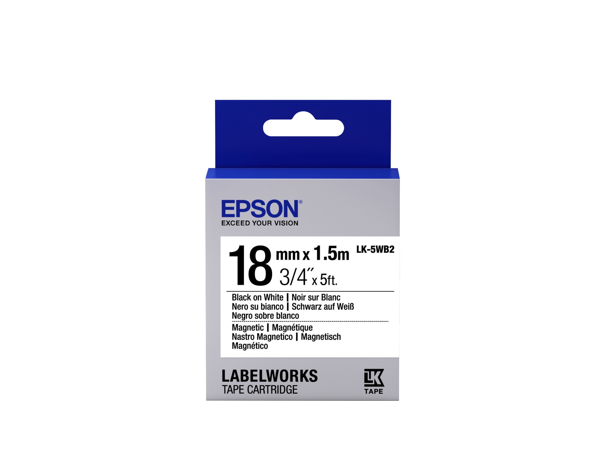 Epson C53S655001/LK-5WB2 Ribbon black on white magnetic 18mm x 1,5m for Epson LabelWorks 4-18mm/24mm/36mm/6-18mm/6-24mm