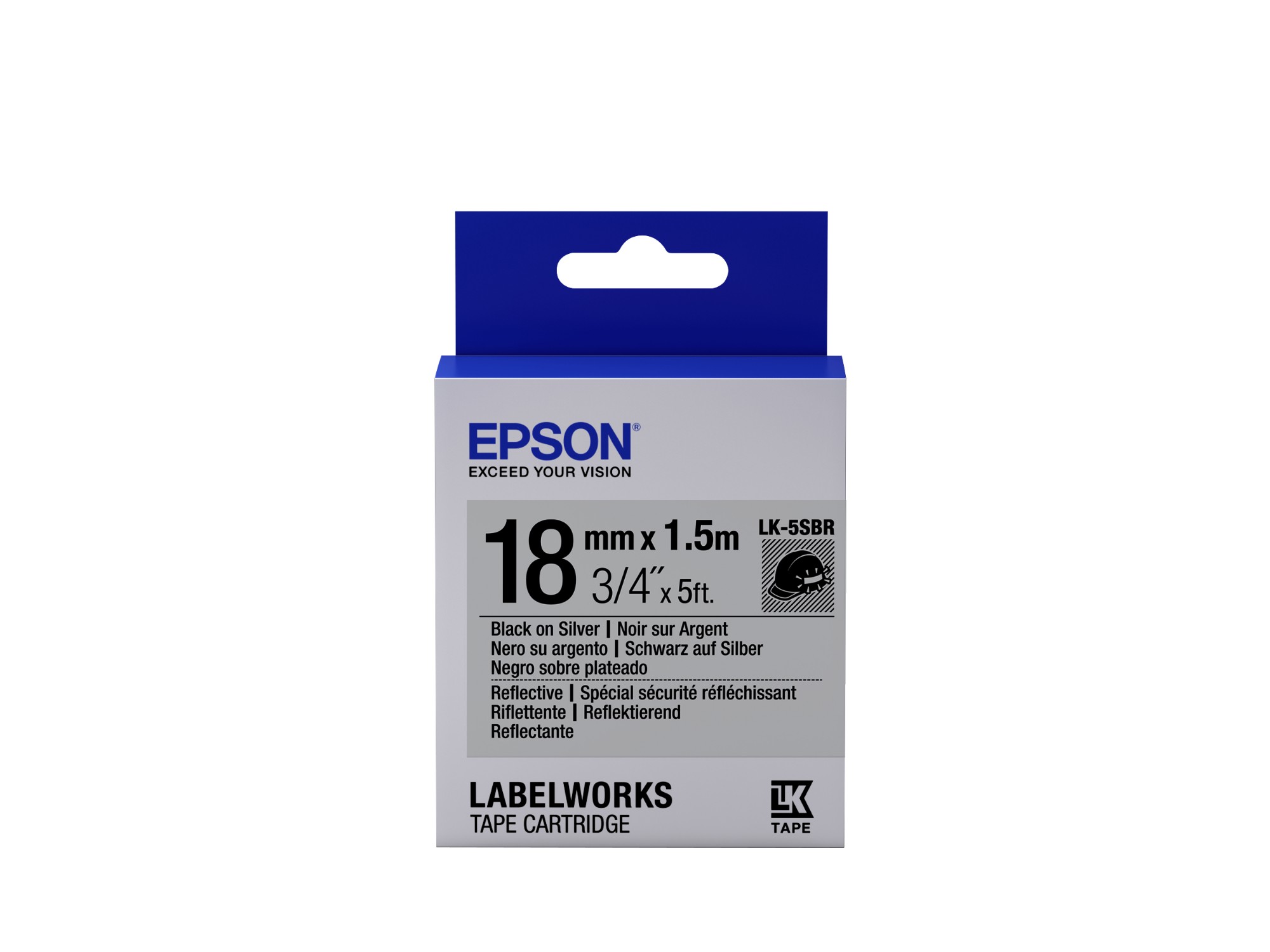 Epson C53S655016/LK-5SBR Ribbon black on silver 18mm x 1,5m for Epson LabelWorks 4-18mm/24mm/36mm/6-18mm/6-24mm