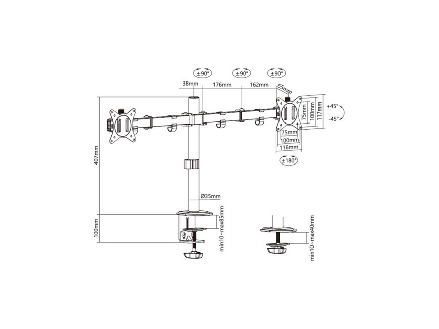 Equip 17"-32" Articulating Dual Monitor Desk Mount Bracket