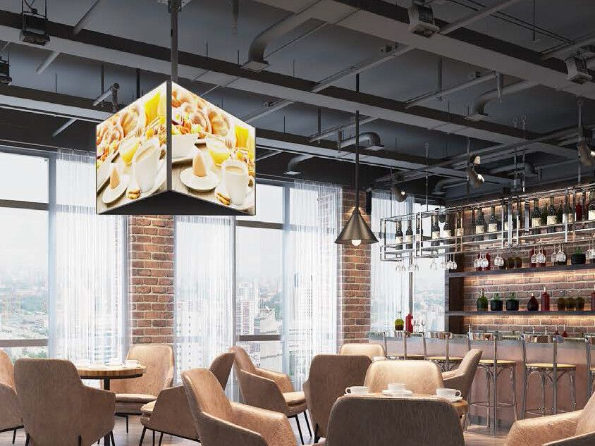 The industrial-grade double TV ceiling mount from equip is the perfect choice for signage applications. The adjustable tilt device allows installation with precise and even screen tilt of the mounted screens for optimal screen visibility. The ideal choice to advertise to the public