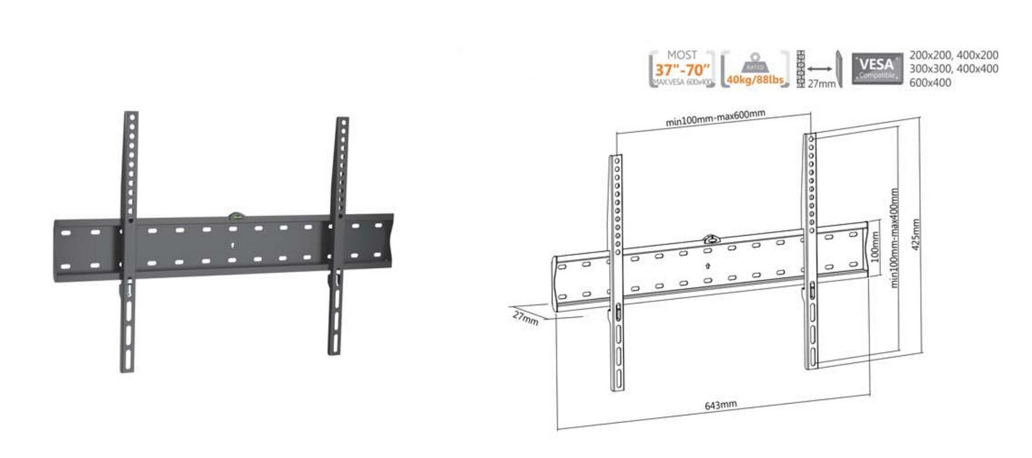 37"-70" Fixed TV Slim Wall Mount Bracket