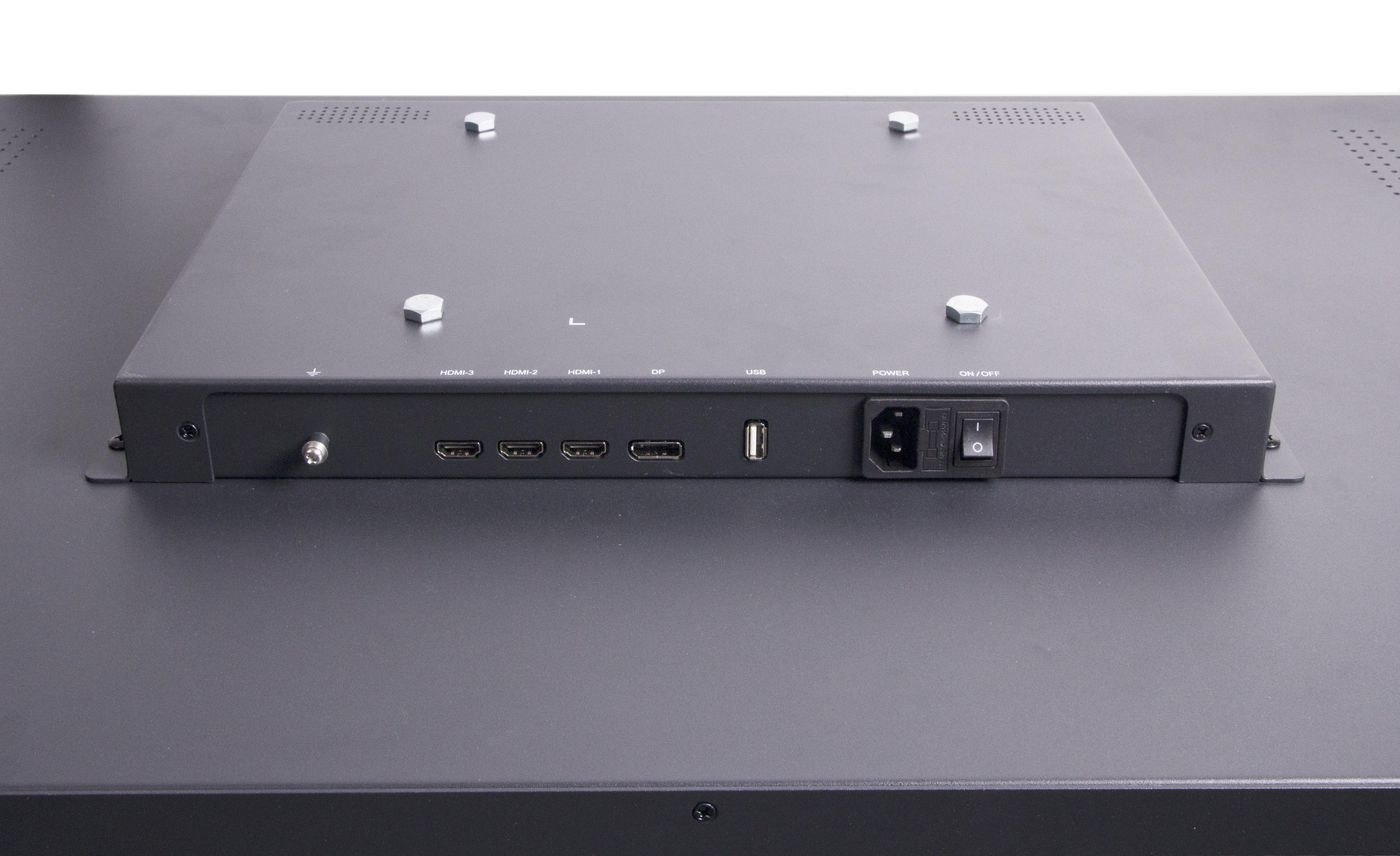 98" 24/7 4K UHD surveillance monitor. Industrial-grade LED screen. Metal chassis design