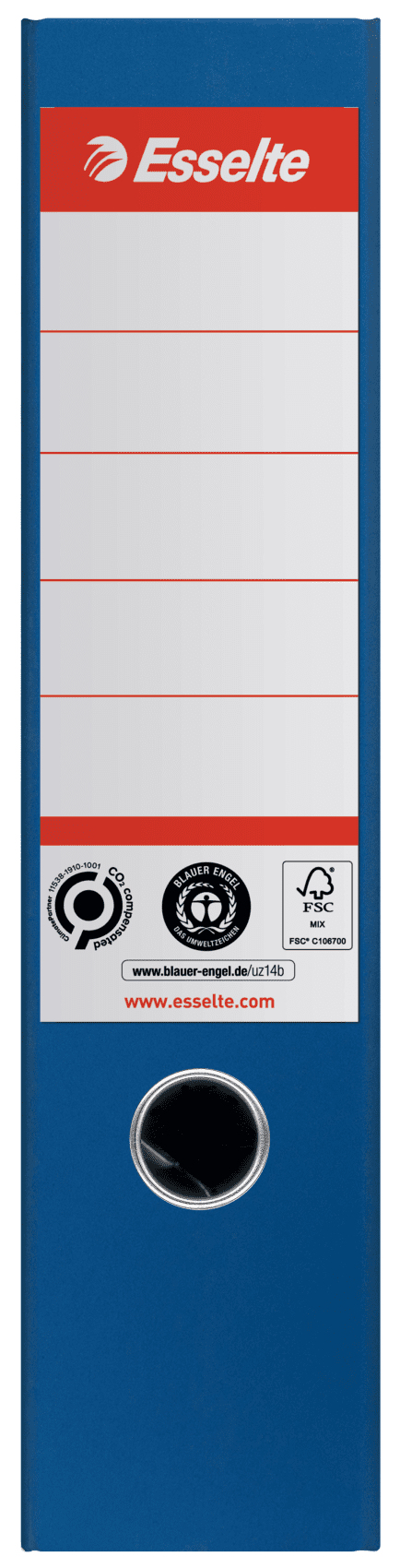 Eco-friendly quality Lever Arch File made from 100% recycled card and with FSC & Blue Angel environmental certifications. Unique No.1 mechanism ensures superior performance. 75mm wide and suitable for A4. This sustainable LAF perfectly complements other Esselte enviromental friendly products like recycled plastic pockets and folders. Modern and fresh colour concept to match the Esselte Vivida Range that will look great at home and in the office. The Esselte LAF improves your office environment – and the environment of our planet.