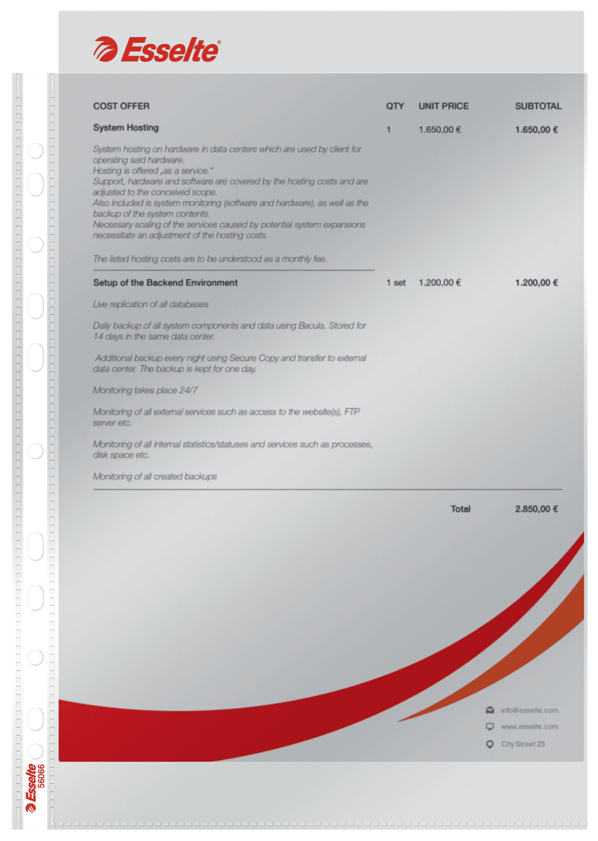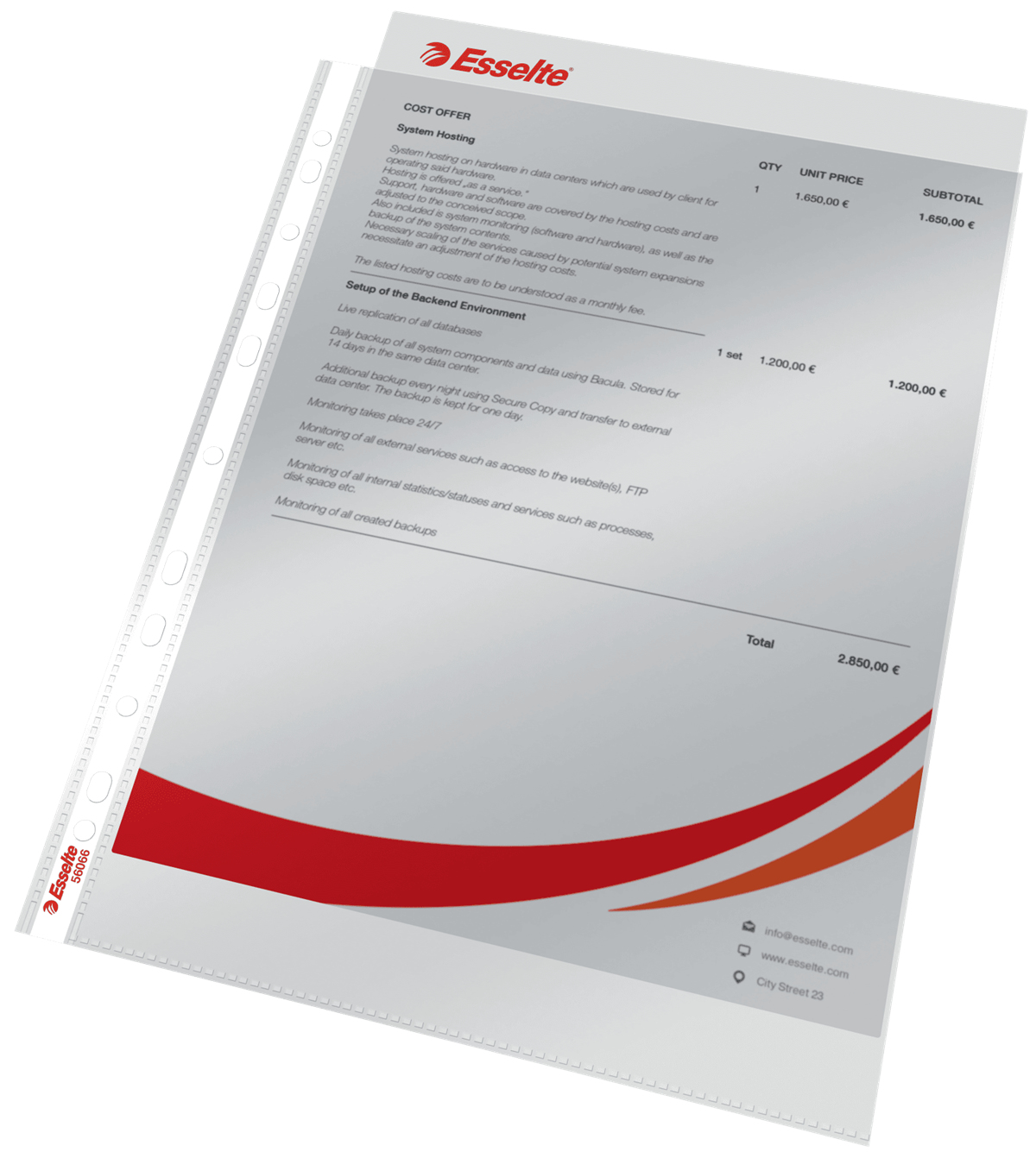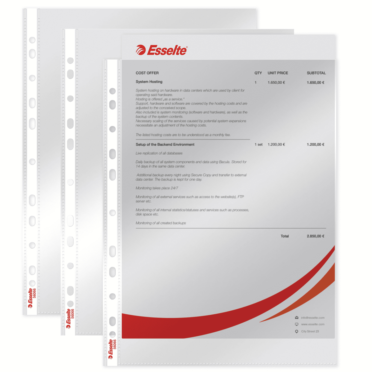 Quality pocket for everyday use. Multi-punched strip allows covenient storage of documents in lever arch files and binders.