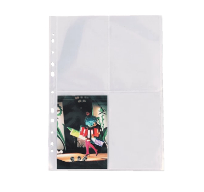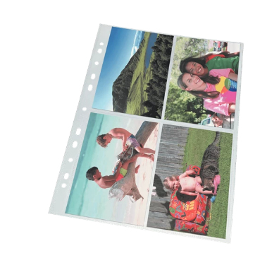 Pocket for 8 photos of size 10 x 15 cm. Multi-punched strip allows covenient storage of photos in lever arch files and binders.