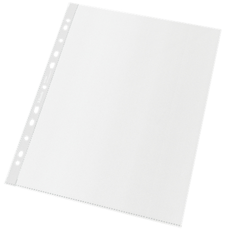 Eco-friendly A4 MAXI document pocket for everyday use made from 100% recycled plastic (industrial waste/offcuts or production leftovers: externally tested by UL). Multi-punched strip allows convenient storage of documents in lever arch files and binders. Accommodates more A4 paper sheets than standard pockets, up to 80. The entire product can be reused and recycled again. It is packed in a cardboard box which is also 100% recycled and recyclable. Made in Europe.