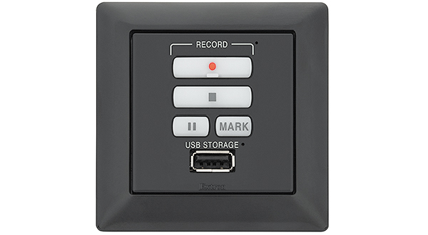 Extron RCP 101 Series remote control panels feature backlit transport controls for remote operation of Extron SMP Series products. A USB port provides convenient access to a thumb drive or external portable storage. RCP 101 panels have status and alarm indicator lights with an audible buzzer. A 15 foot (4.6 meter) USB cable is included. The RCP 101 panels may be used with Extron USB Extender Plus Series twisted pair extenders to support distances up to 330 feet (100 meters). Available in decorator-style, MK, and EU versions; the EU version is compatible with Flex55 enclosures or EU junction boxes. RCP 101 Series panels include black and a white faceplates to compliment a wide range of environments. MK model is available in white only.