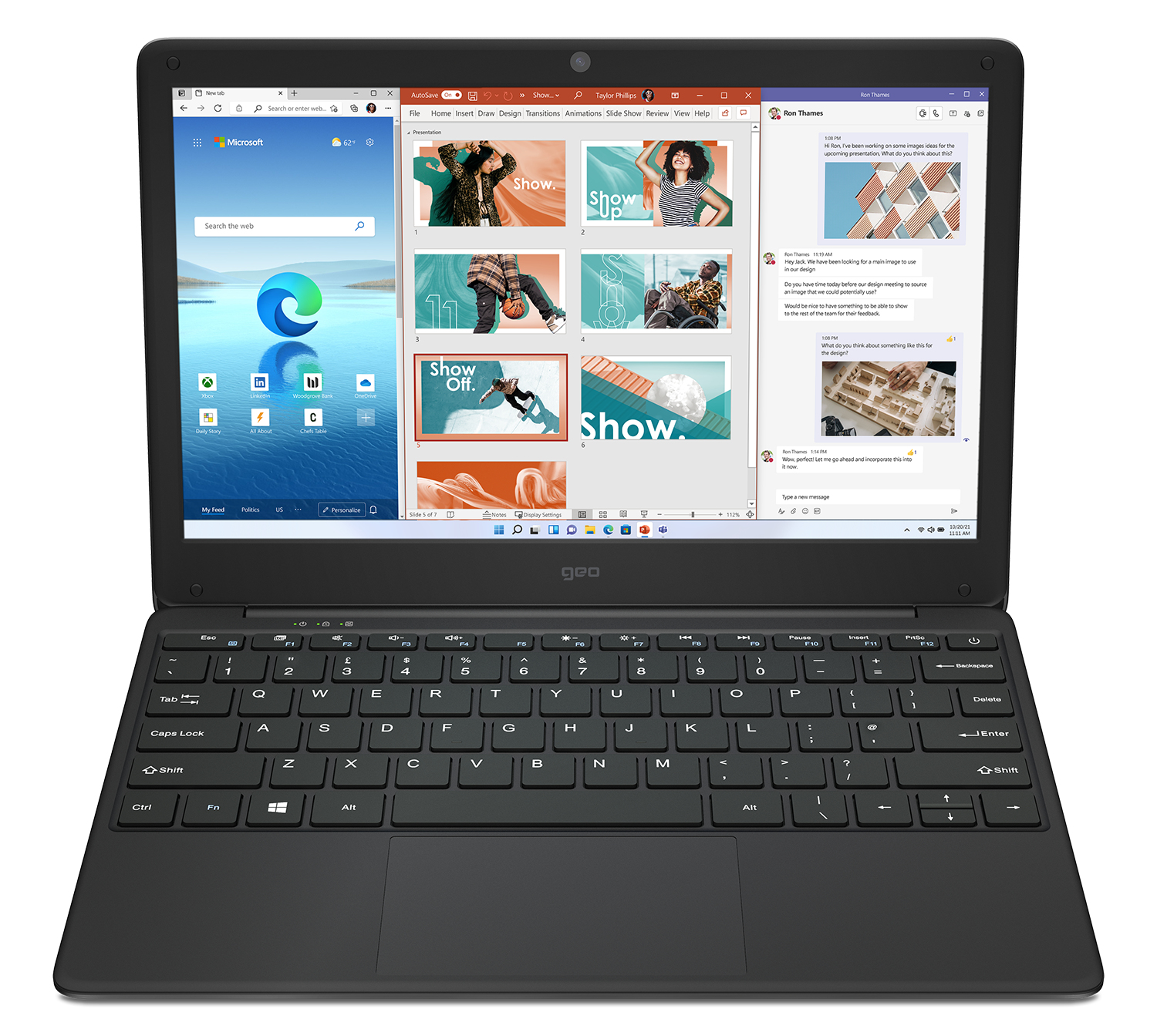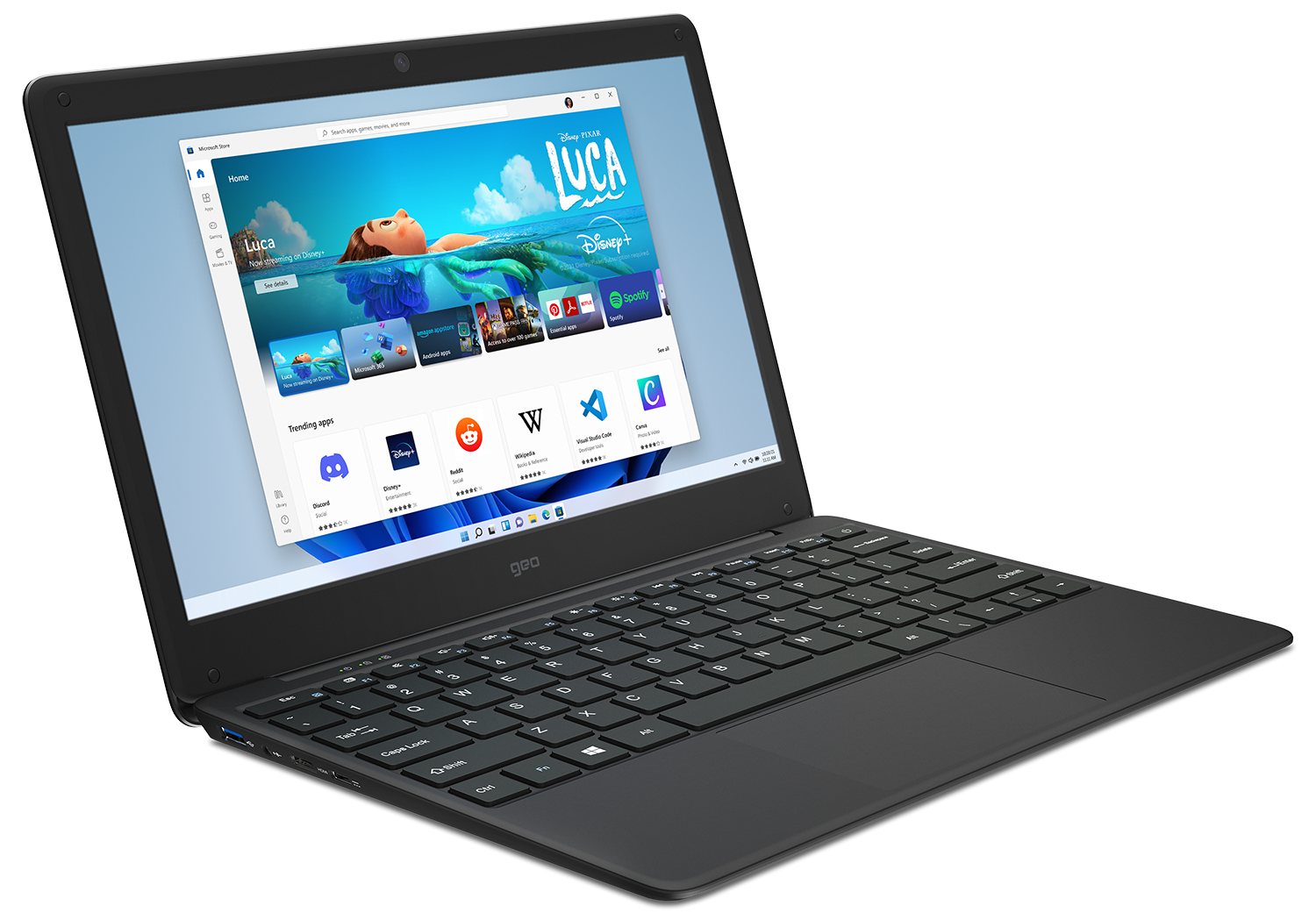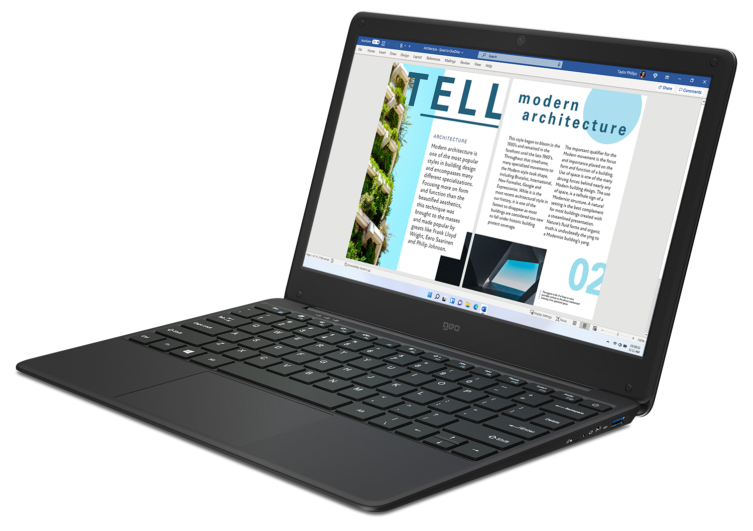 GeoBook 120 comes with Windows 10 Home in S-Mode ready to go, with an upgrade to Windows 11 Home when available at no extra cost on compatible models.