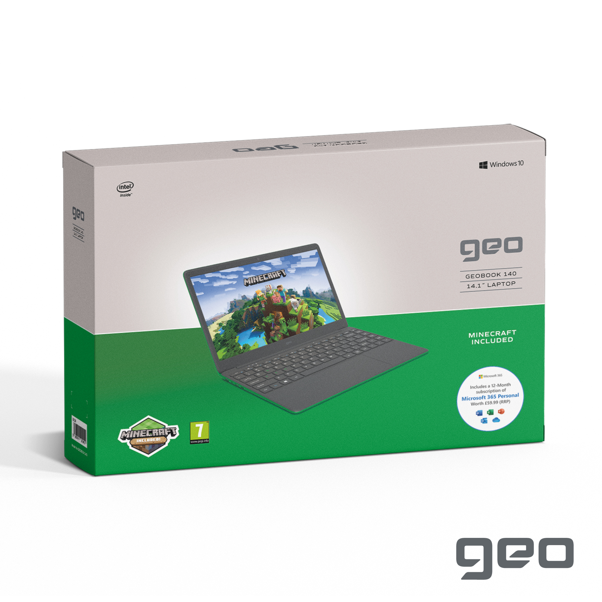 A compact and portable laptop with a 14-inch HD display, GeoBook 140 Minecraft Edition is powered by an Intel Celeron processor and 4GB RAM. Perfectly suited to the dual-roles of homework and play, this versatile laptop comes with Windows 10, and includes a 1-year subscription to Microsoft 365, along with Minecraft’s rewarding gameplay experience.