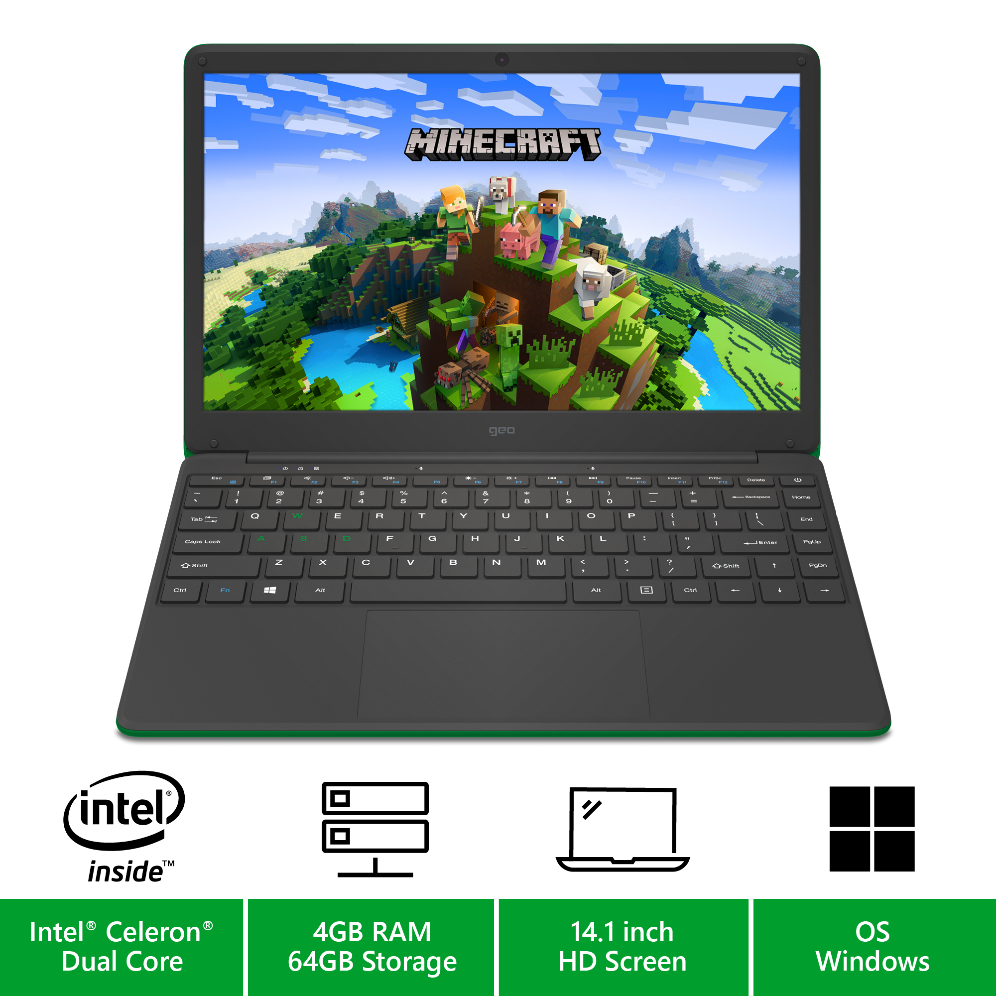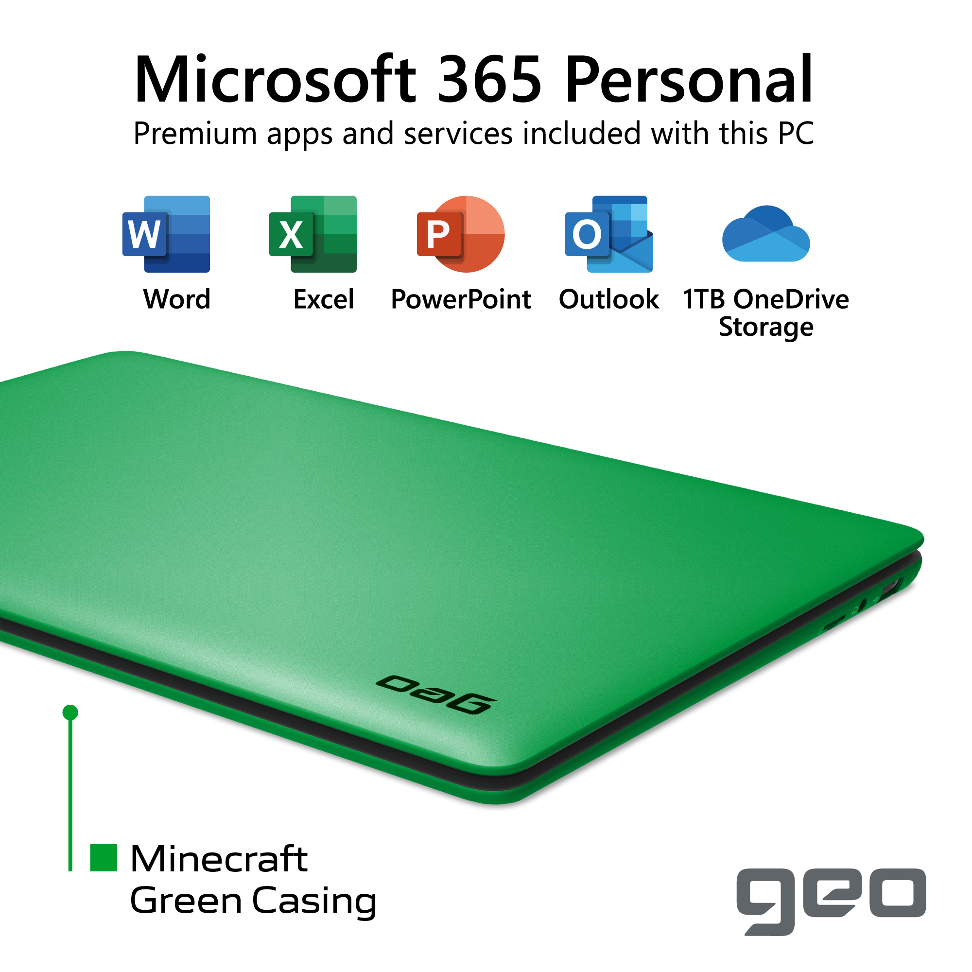 Geo Computers GeoBook 140 Minecraft Edition 14-inch Laptop Intel Celeron, 4GB RAM, 64GB eMMC - Minecraft included - Green