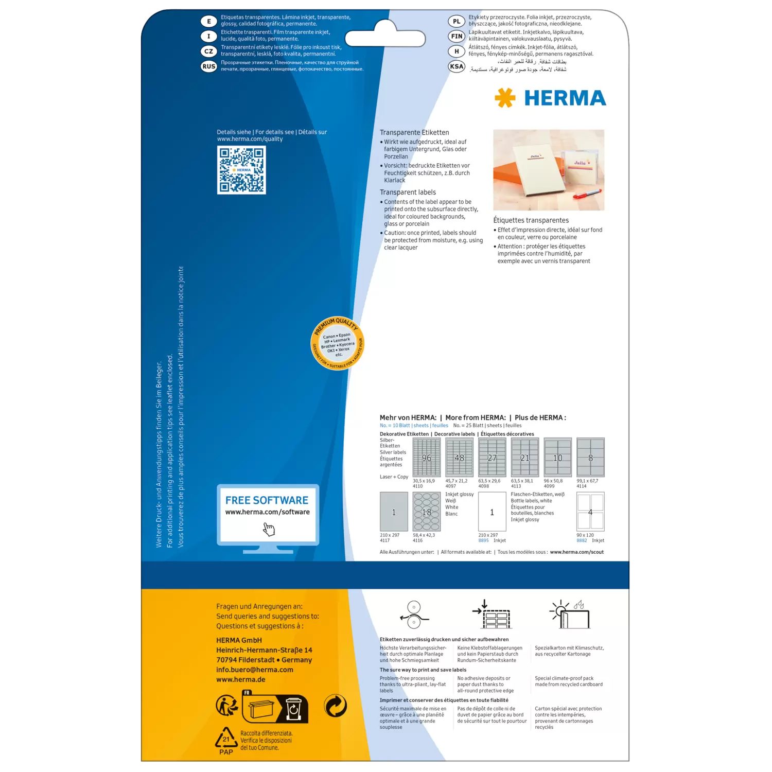 HERMA Inkjet film labels transparent A4 210x297 mm film glossy 10 pcs.