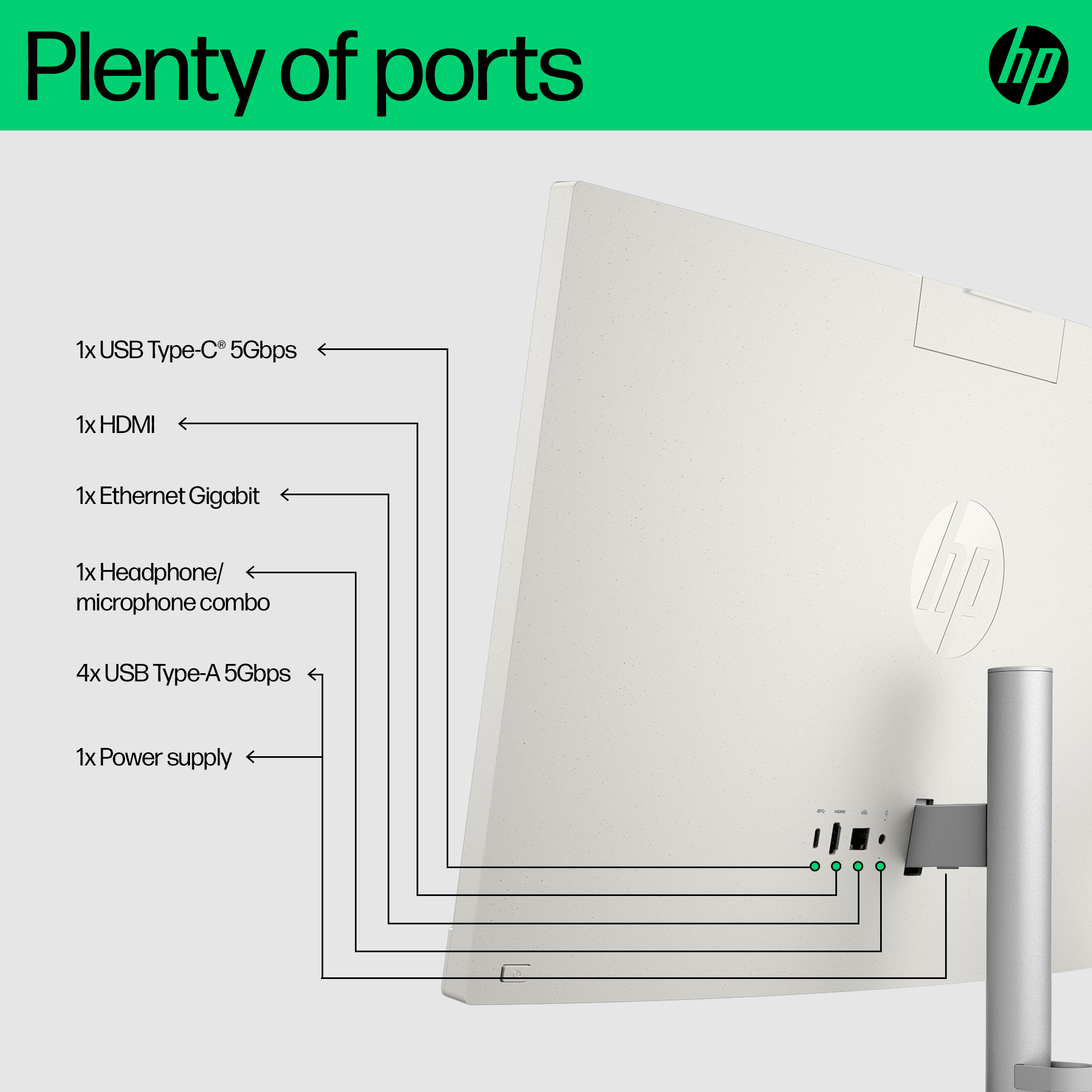 This slim, HP 23.8" All-in-One Desktop PC empowers you to do more while using less. Responsibly manufactured using post-consumer recycled and ocean-bound plastics[1] and is EPEAT Gold Registered and ENERGY STAR Certified[2]. With a powerful processor, upgraded memory and enhanced multitasking features, there’s no compromise for heightened performance.