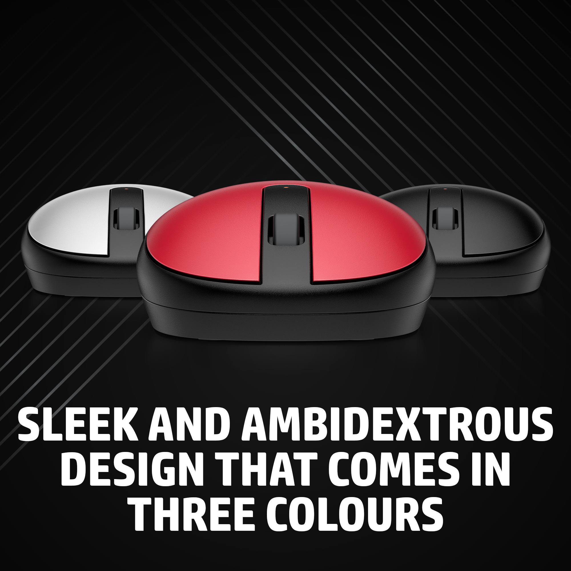 Sleek and ambidextrous design. Choose from three stylish colors: black, red, or silver. It also sports three buttons and a scroll wheel.