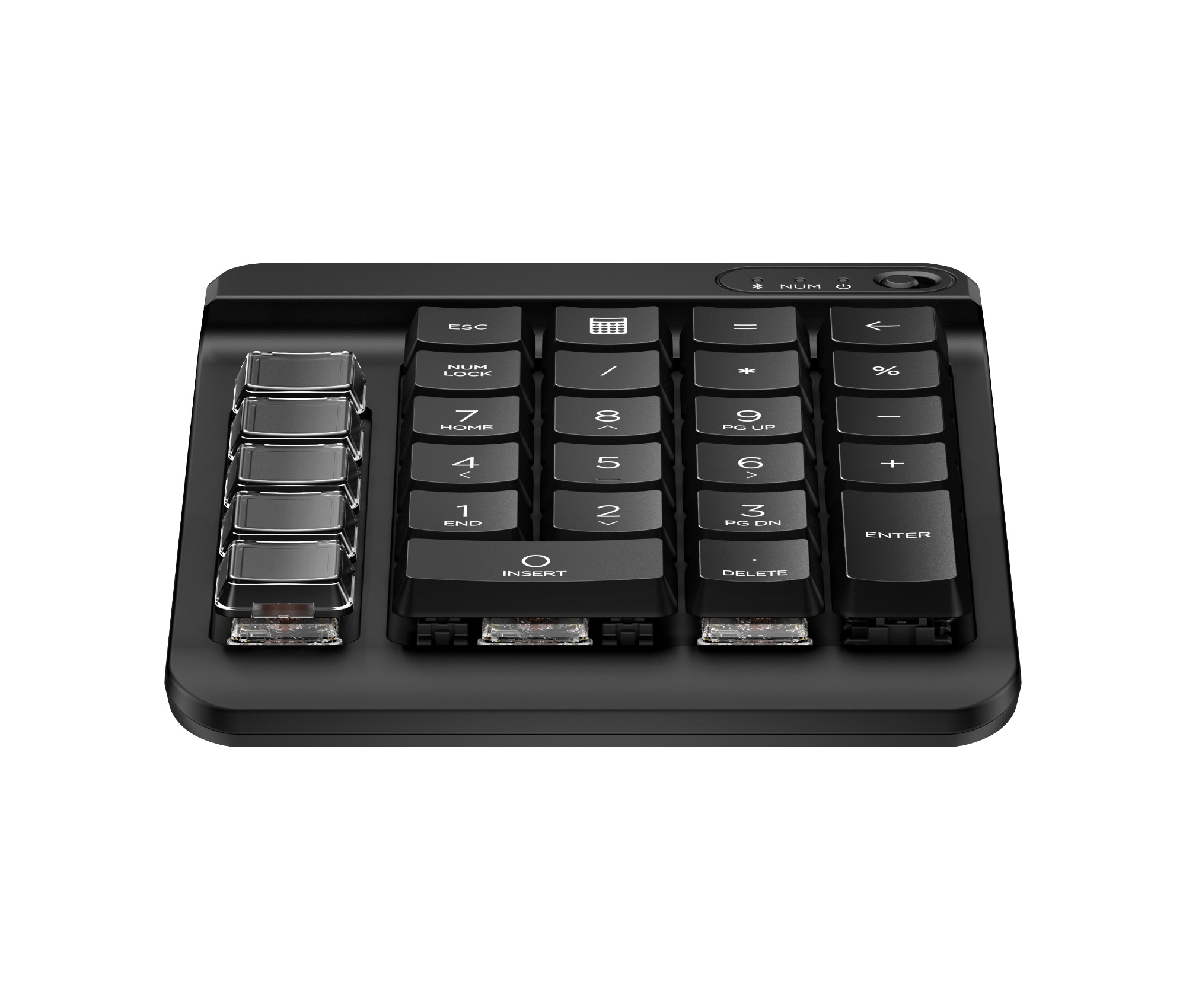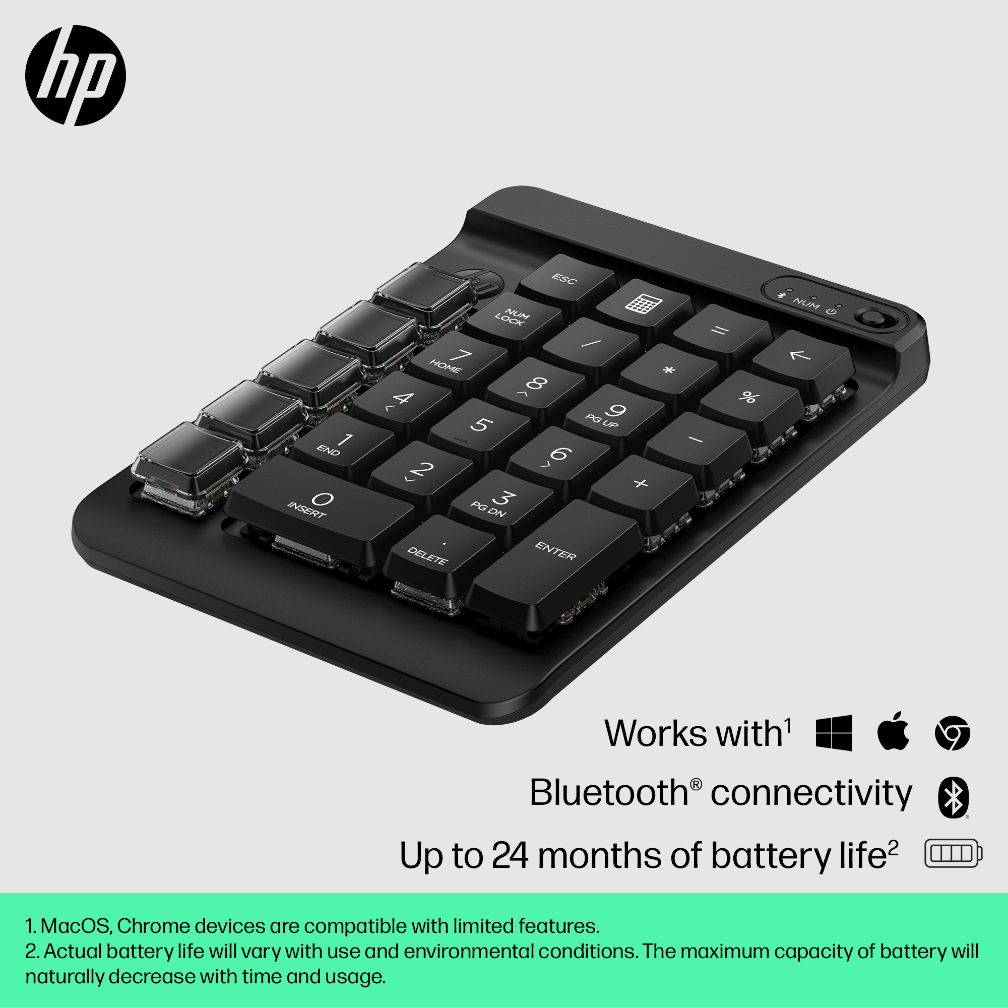 Get more than numbers out of your keypad. The HP 430 Programmable Wireless Keypad is fully customizable[1], to give you full control. Besides the standard numpad layout, a column of five blank keys can be configured as you see fit. In fact, this keypad has nine programmable keys with swappable keycaps for an endless array of workflow options.
