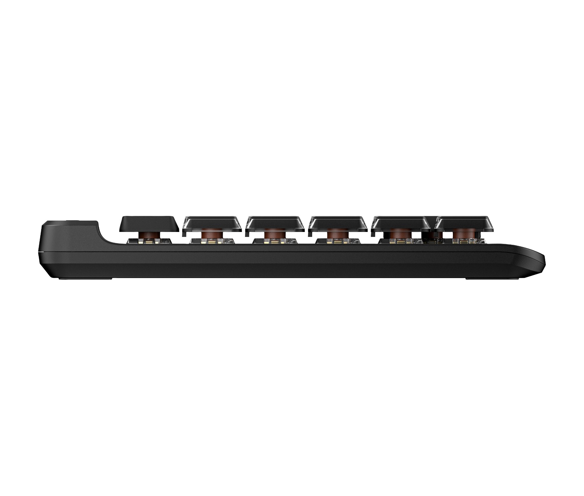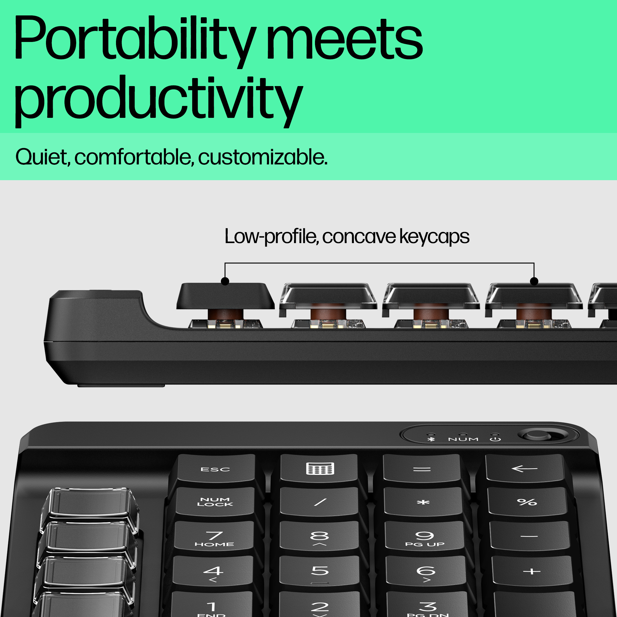Bring your workflow on the go. This spill-resistant, sanitizable<sup>[2]</sup> keypad has a compact, commuter-friendly design and can work on both sides of your main keyboard. Add utility and comfort to your day with a customizable layout and blank key column that feature low-profile, concave keycaps for quiet and comfortable typing.