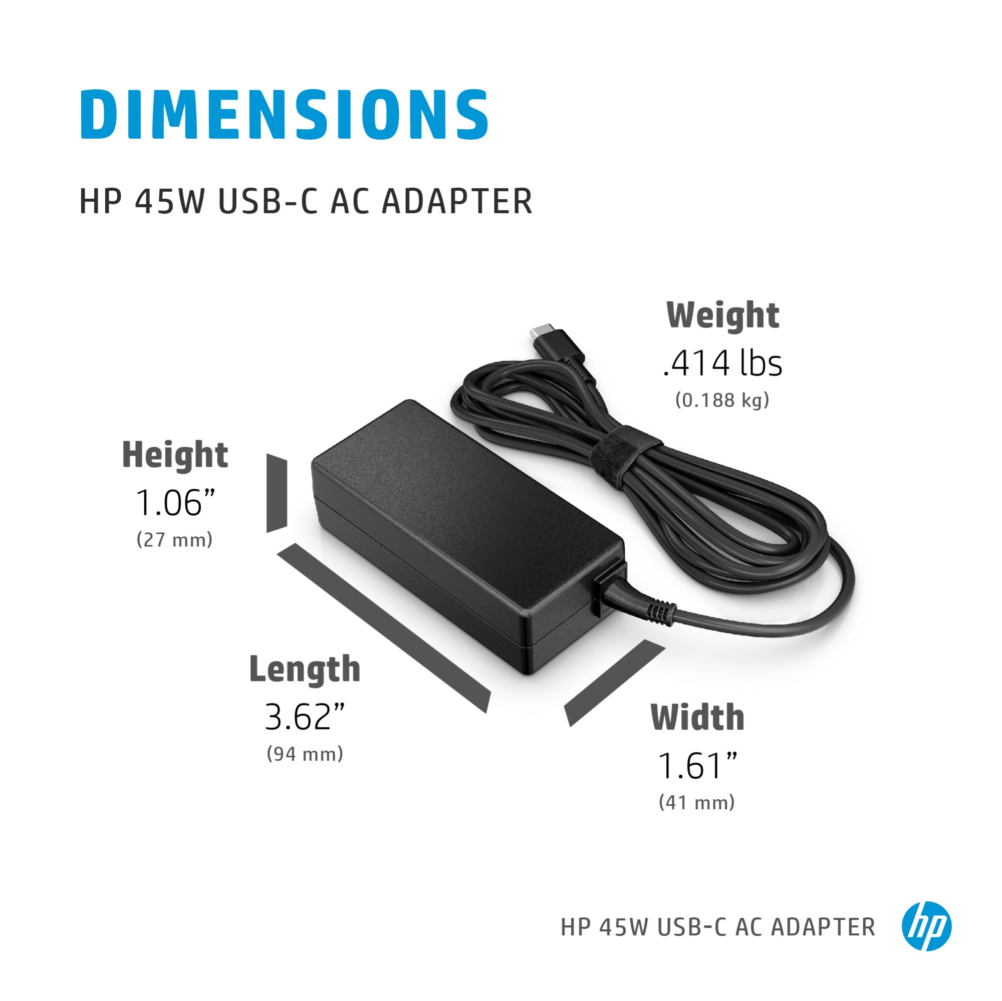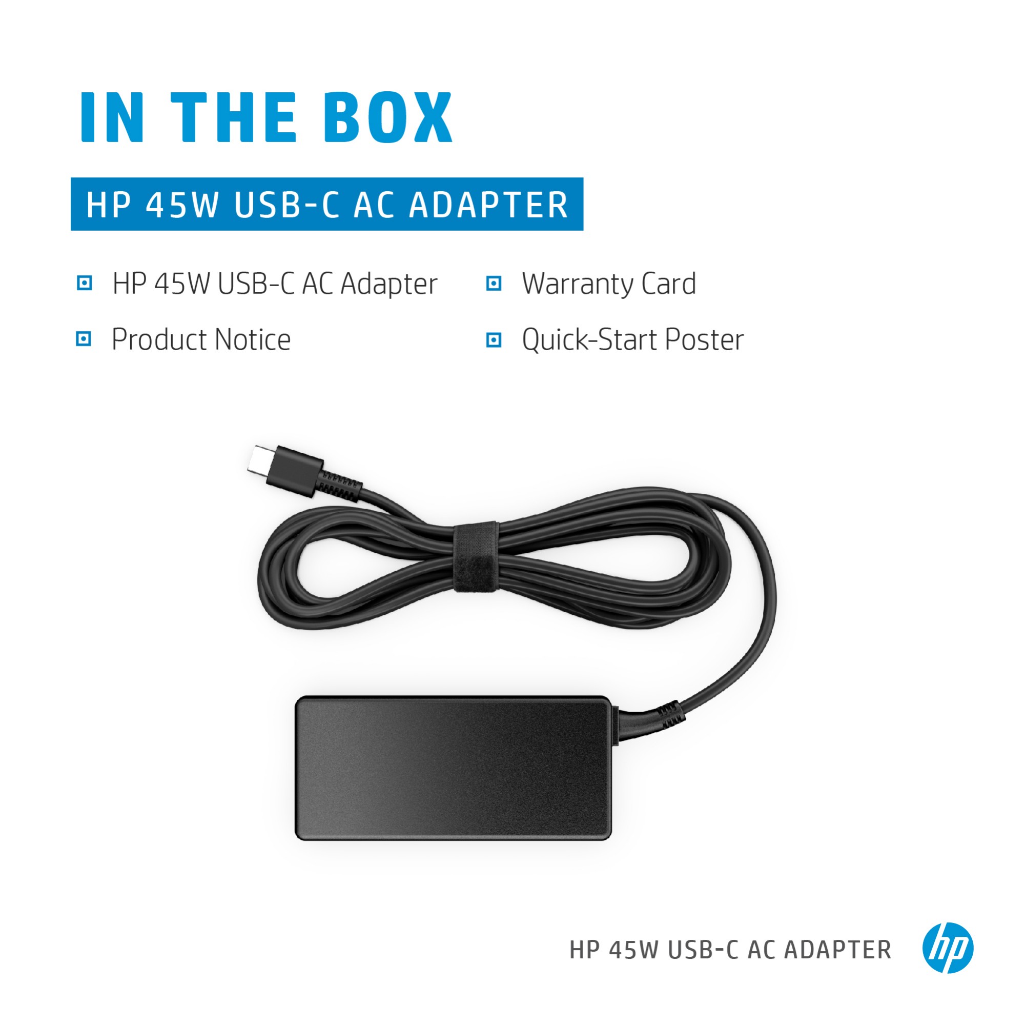 This 45W USB-C® AC Adapter lets you use your existing HP Smart AC adapter's power cord.