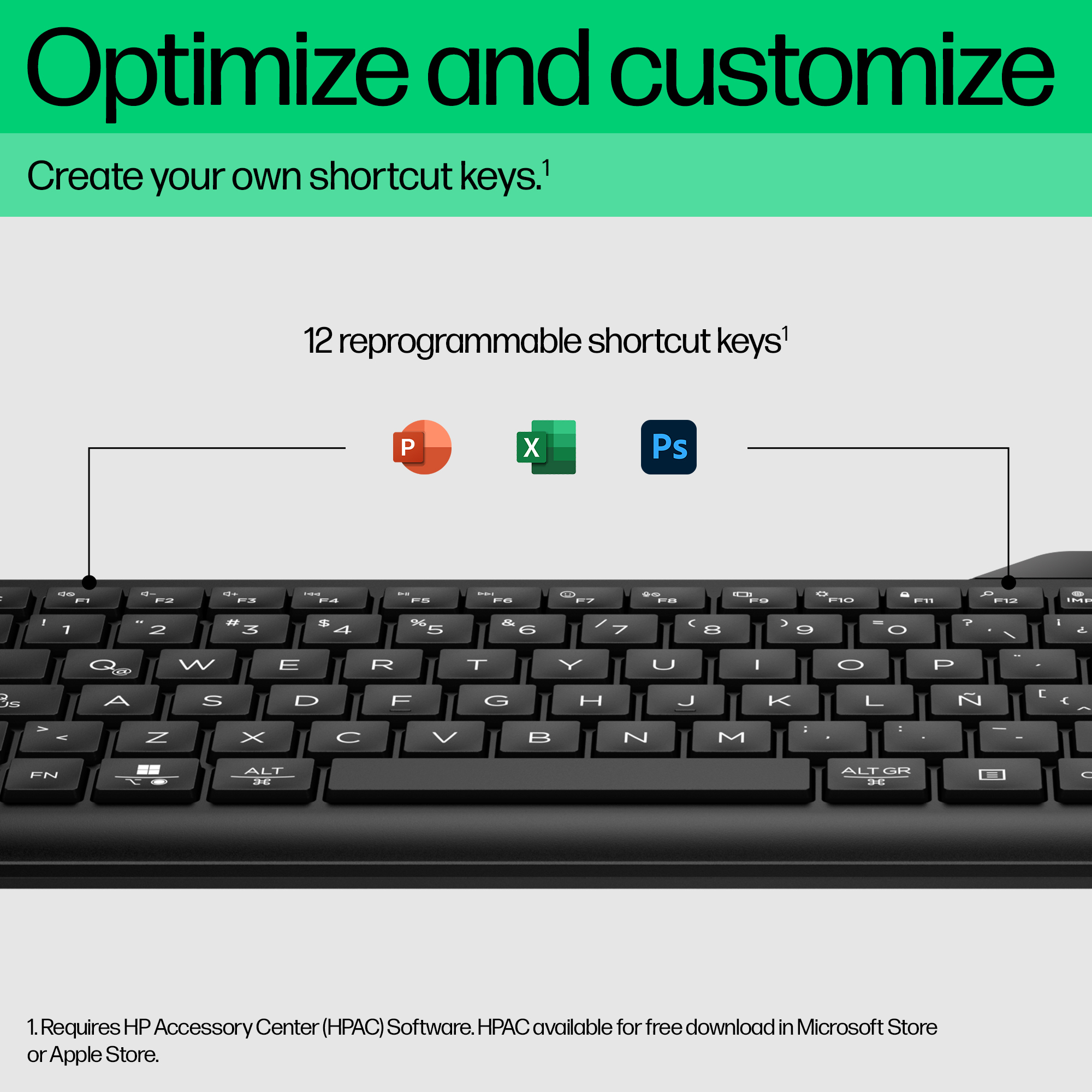 A little flexibility goes a long way. Program the F1–F12 keys to act as custom shortcuts, or automate difficult keystroke combinations to perform your day-to-day tasks in a fraction of the time<sup>[1]</sup>. HP Accessory Center software makes it easy to set and change commands on the fly.