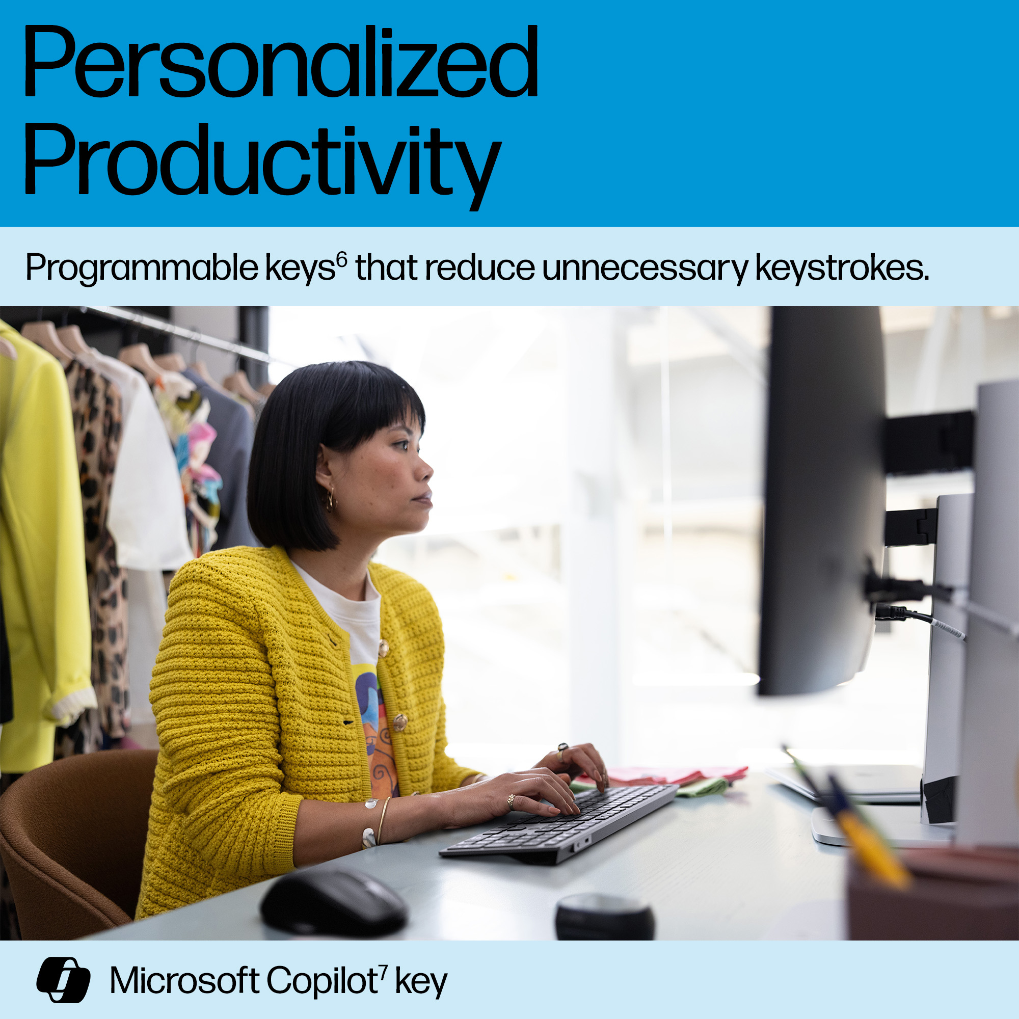 Elevate your productivity with programmable keys<sup>[6]</sup> that reduce unnecessary keystrokes. With a single key, you can also access the power of Microsoft Copilot<sup>[7]</sup> to work smarter and more efficiently.