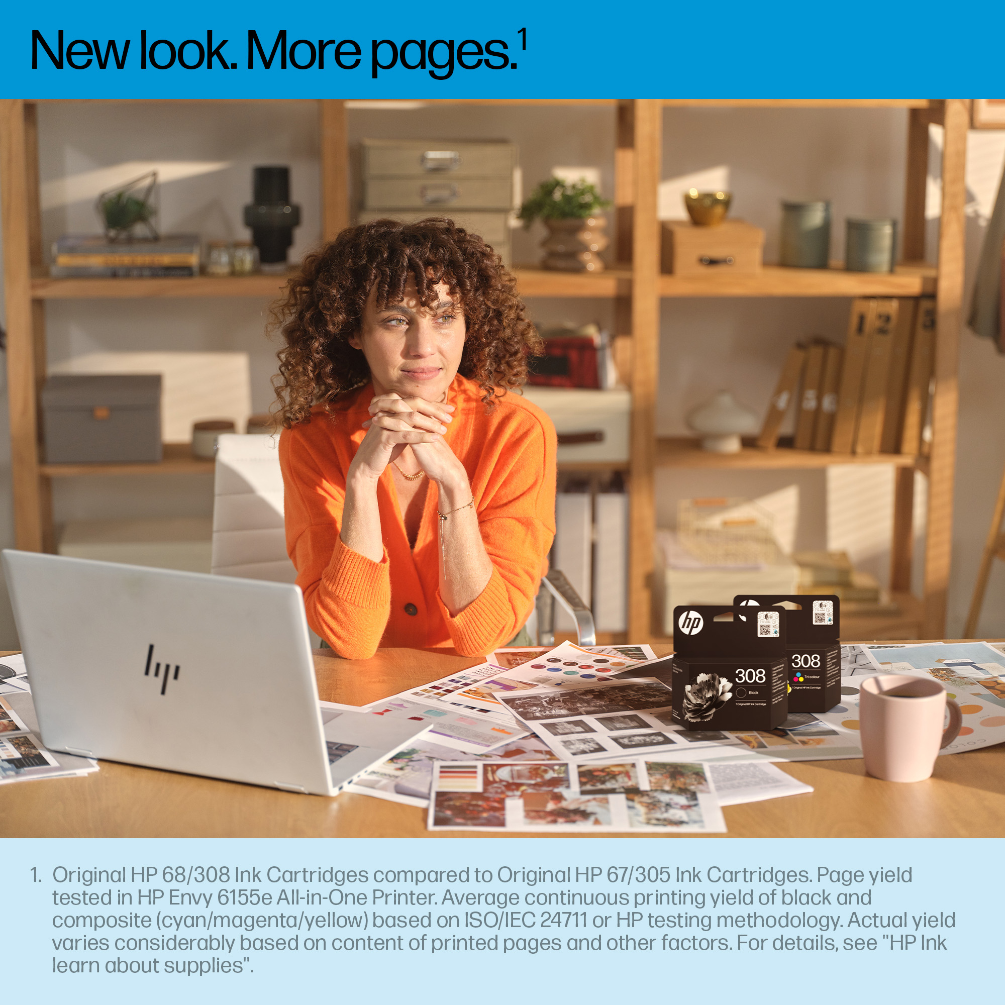 | Compatibility | HP 308 ink cartridge works with: HP DeskJet 2900, 4300 HP Envy 6110e, 6120e, 6122e, 6130e, 6132e, 6520e, 6530e, 6532e, 6558e, Envy 6100, Envy 6165e, Envy 6500 |