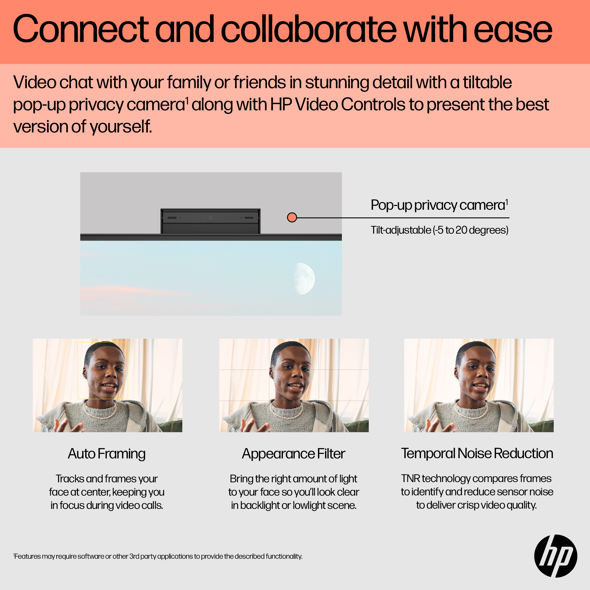 Made for true collaboration with a tiltable, pop-up privacy camera<sup>[4]</sup>, dual mics, and advanced noise-reduction.