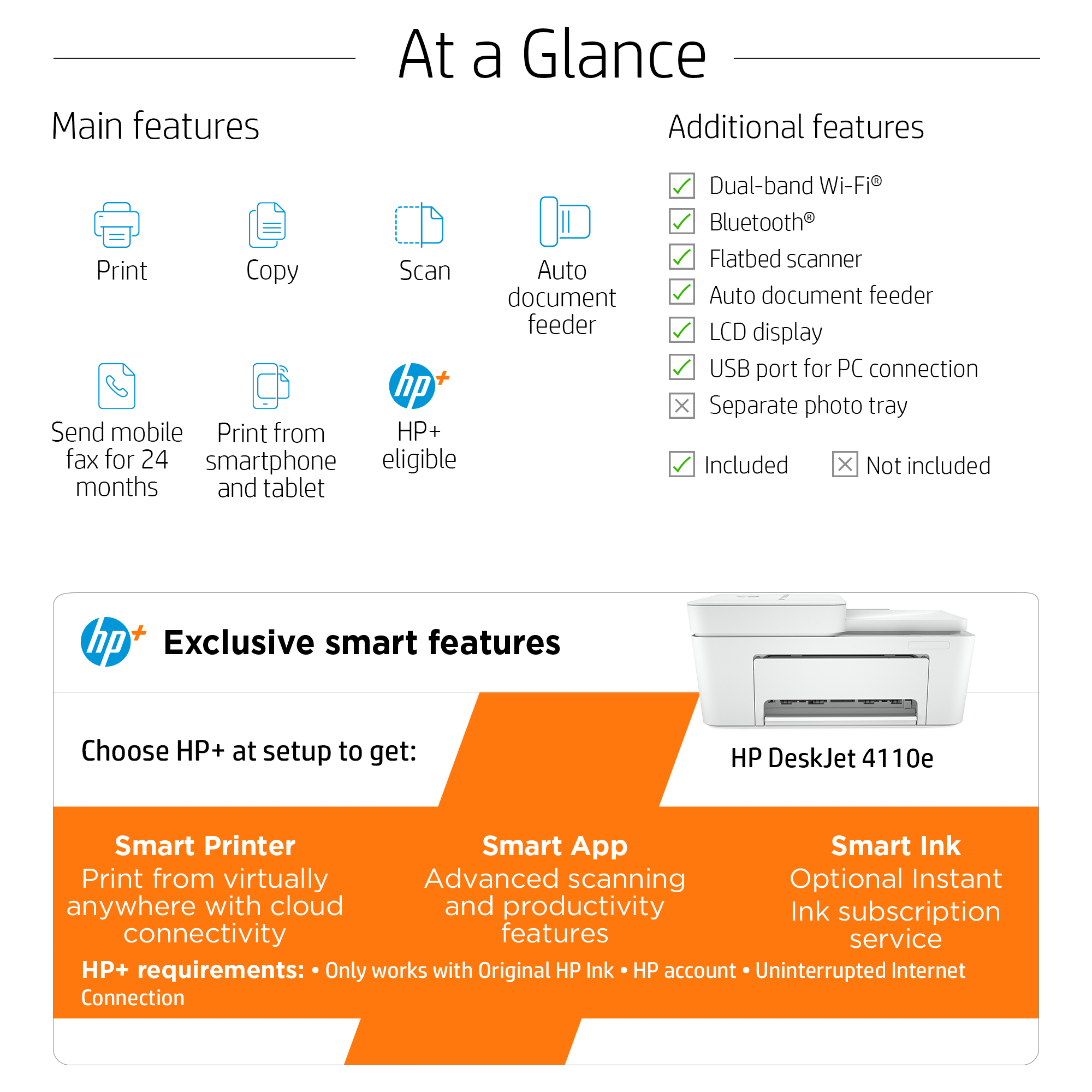 HP DeskJet Plus DeskJet 4110e Wireless All-in-One Color Printer, Instant Ink; Copier, Scanner