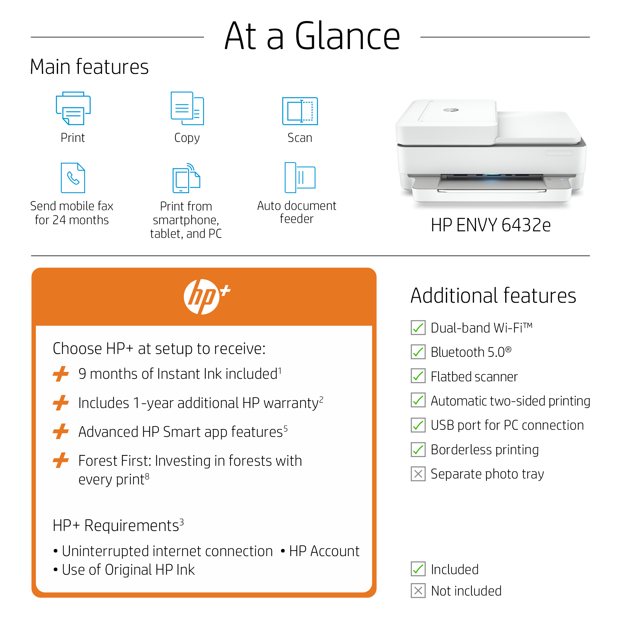 This is an HP+ enabled printer. Choose HP+ at product setup to activate benefits. HP+ requires an HP account, ongoing connection to the internet, and exclusive use of Original HP Ink cartridges for the life of the printer. More at: http://www.hp.com/plus