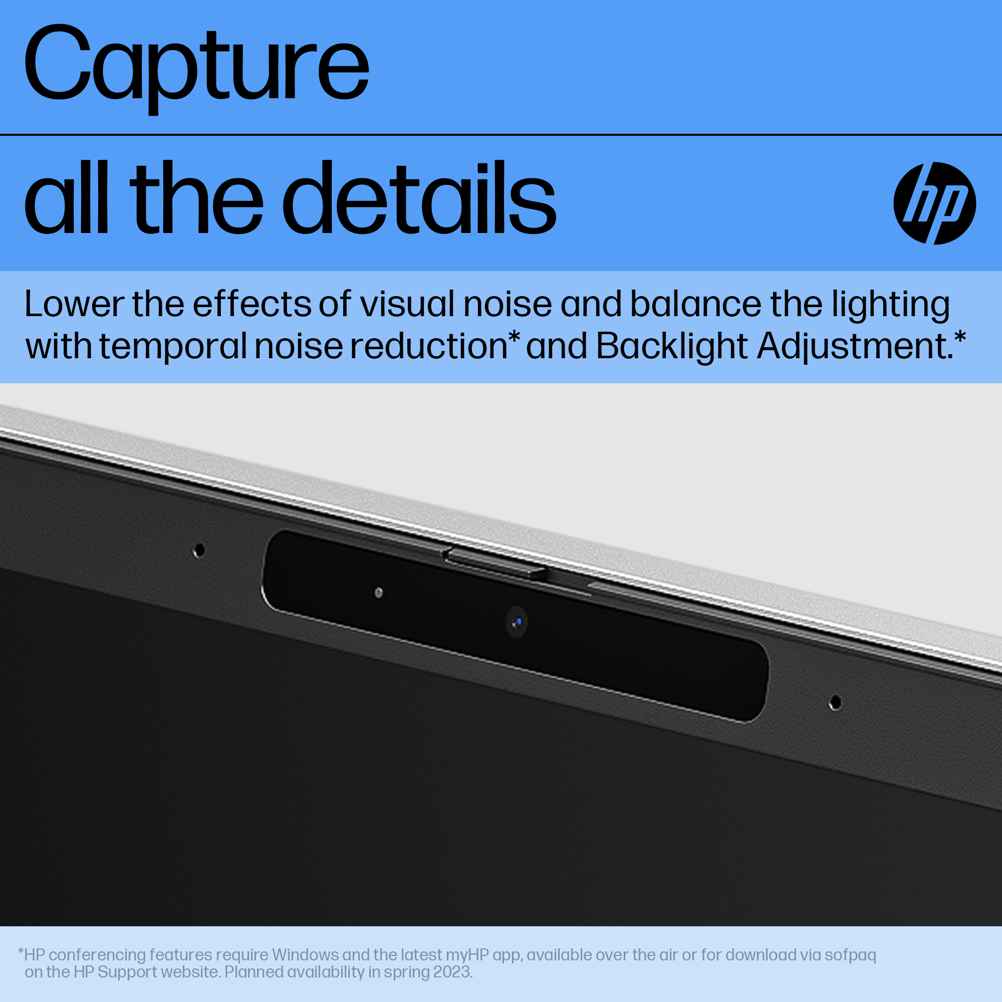 Enjoy the crystal-clear audio performance delivered by HP Dynamic Audio[4] and HP AI Noise Reduction.[4]