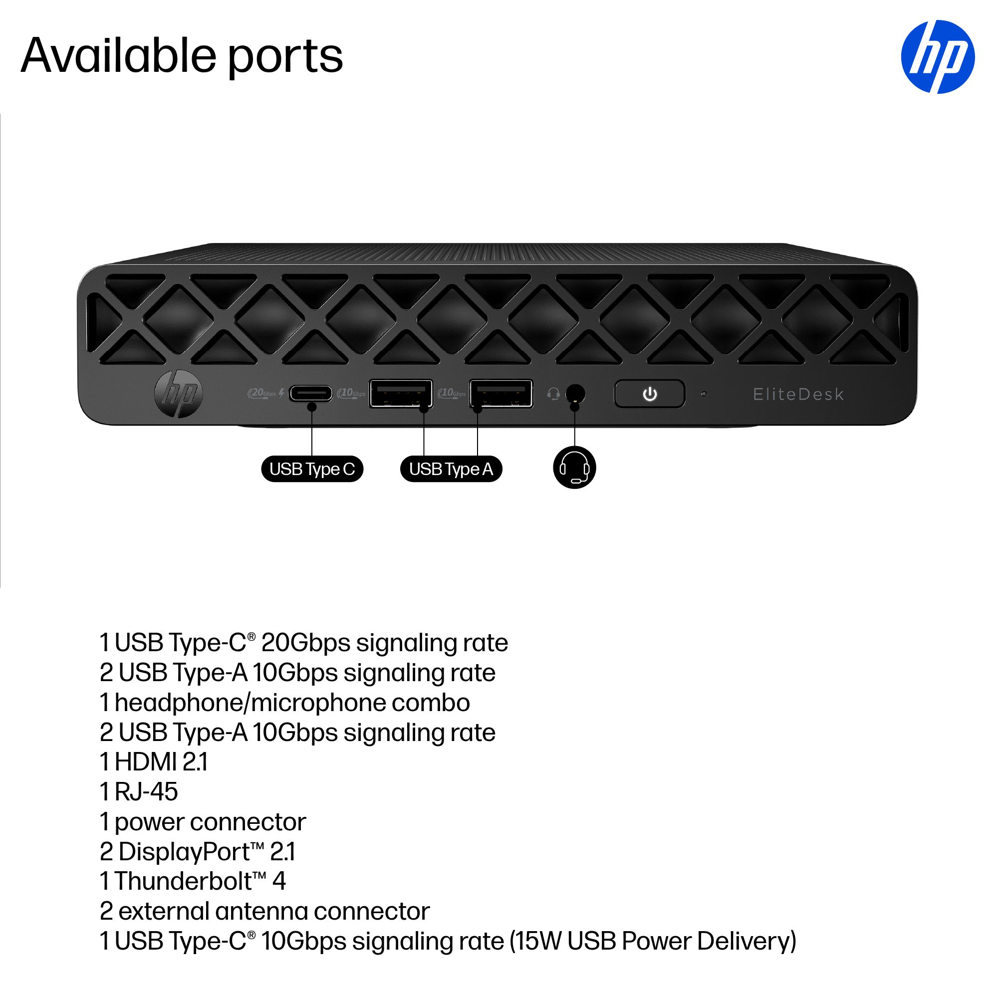 Delivering exceptional AI-enhanced performance with the latest Intel Core™ Ultra processor[2] with an up to 13 TOPS NPU[3], the HP EliteDesk 8 Mini G1i AI PC's compact design, versatile deployment options, and advanced security features make it the ideal choice for modern workspaces.