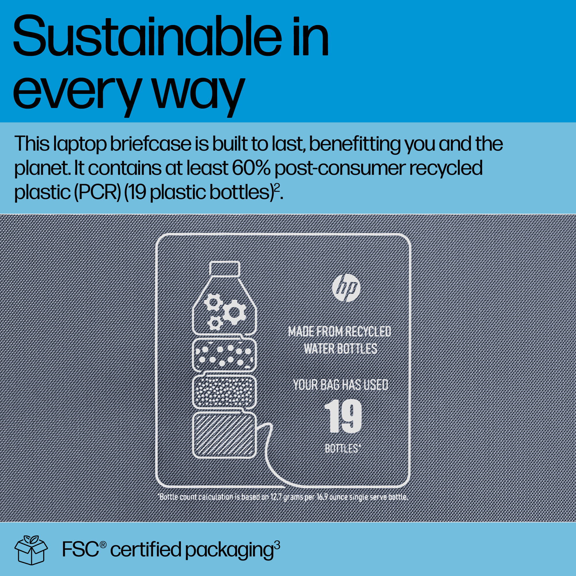 Keep your laptop and accessories protected and organized as you move throughout your day with this durable 14-inch laptop briefcase. Responsibly made using recycled materials, this spacious briefcase is an ideal companion no matter where your journey takes you.