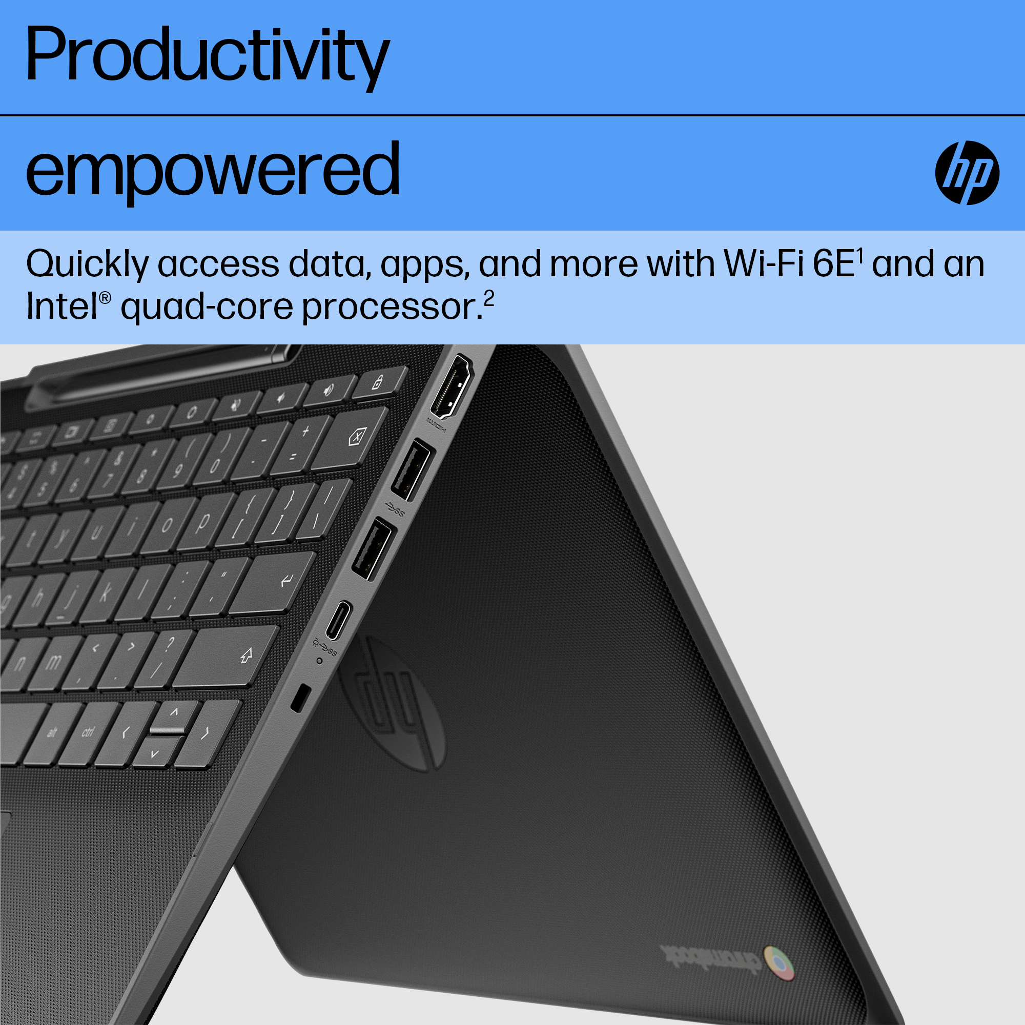 HP Fortis Flip G1i Chromebook Intel® N N150 29.5 cm (11.6") Touchscreen HD 4 GB LPDDR5-SDRAM 32 GB eMMC Wi-Fi 6E (802.11ax) ChromeOS Black