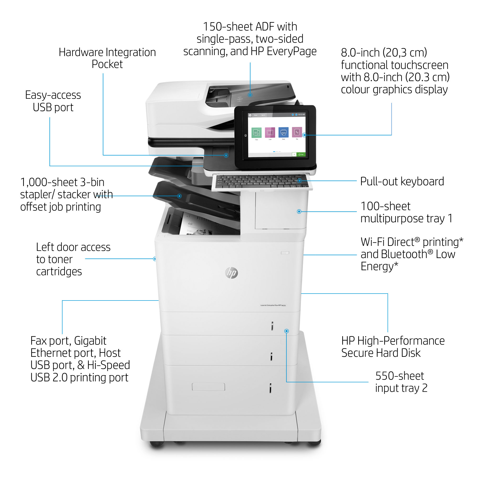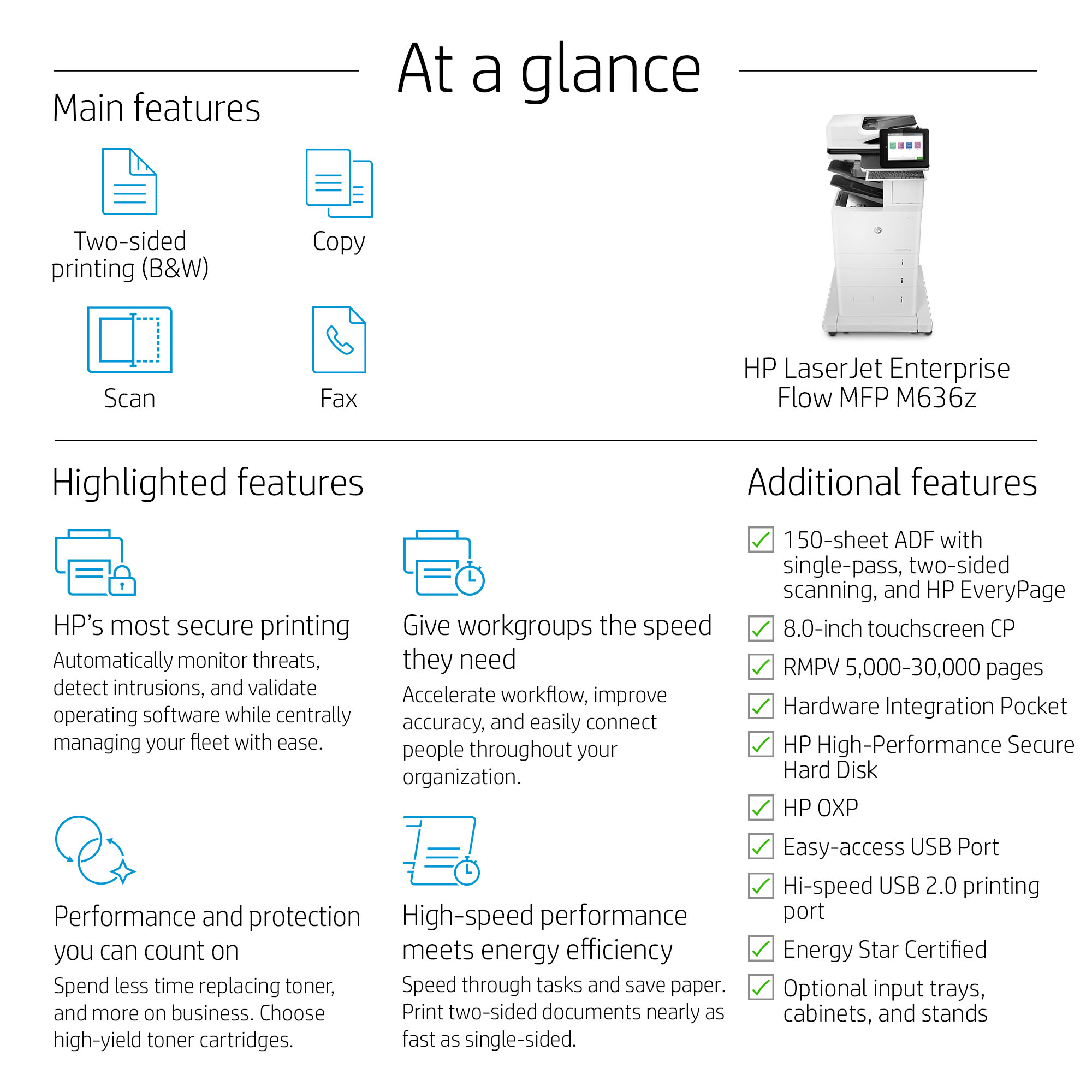 HP LaserJet Enterprise Flow M636z Wireless Multifunction Black and white Printer, Copier, Scanner; Duplex