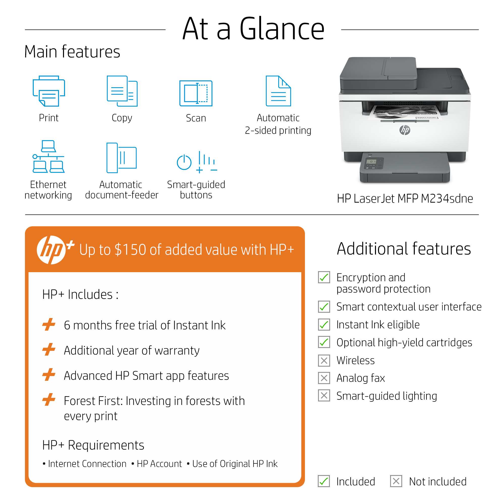 HP LaserJet M234sdne Multifunction Black and white Printer, Ethernet Only; Copier, Scanner