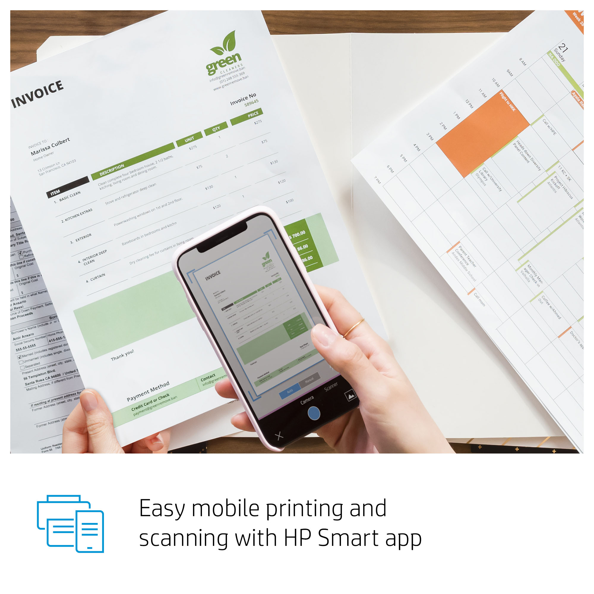 Get easy printing and scanning from your mobile device, with HP app.<sup>[3]</sup><sup>[3,4]</sup>