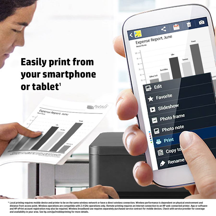 Enjoy unparalleled flexibility: print from your smartphone or tablet from virtually anywhere.[10]