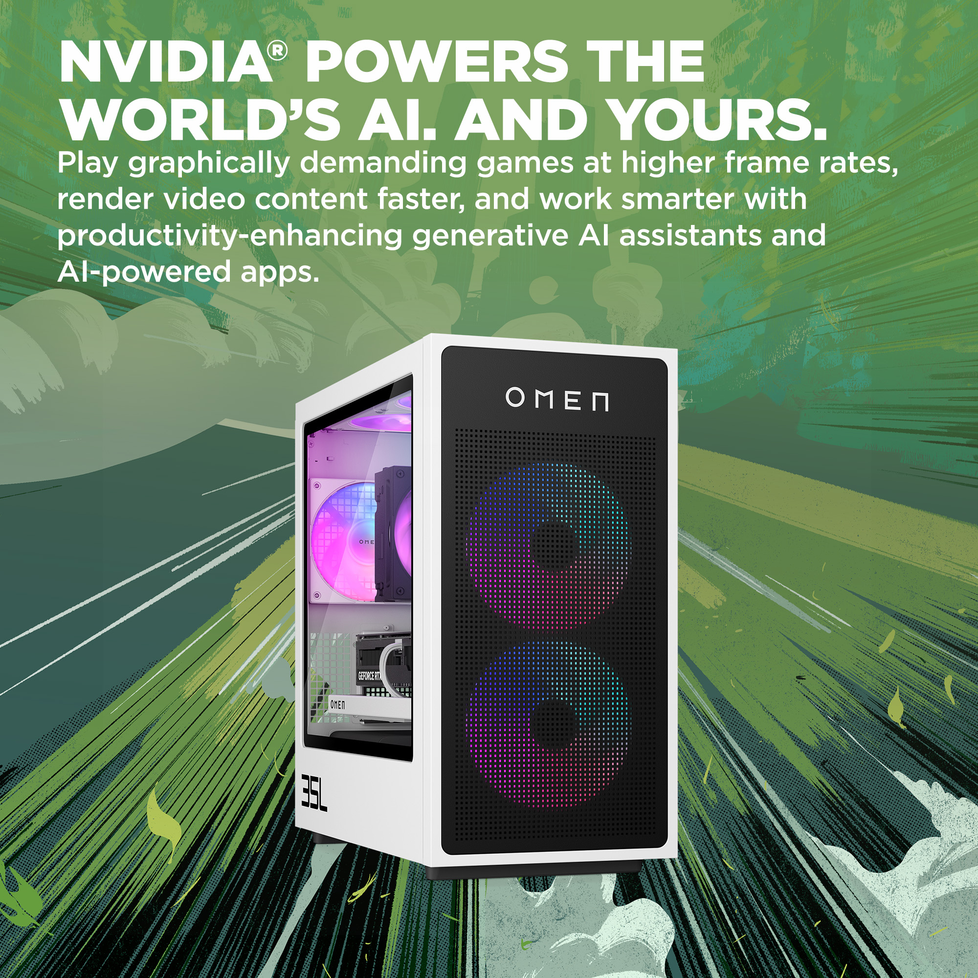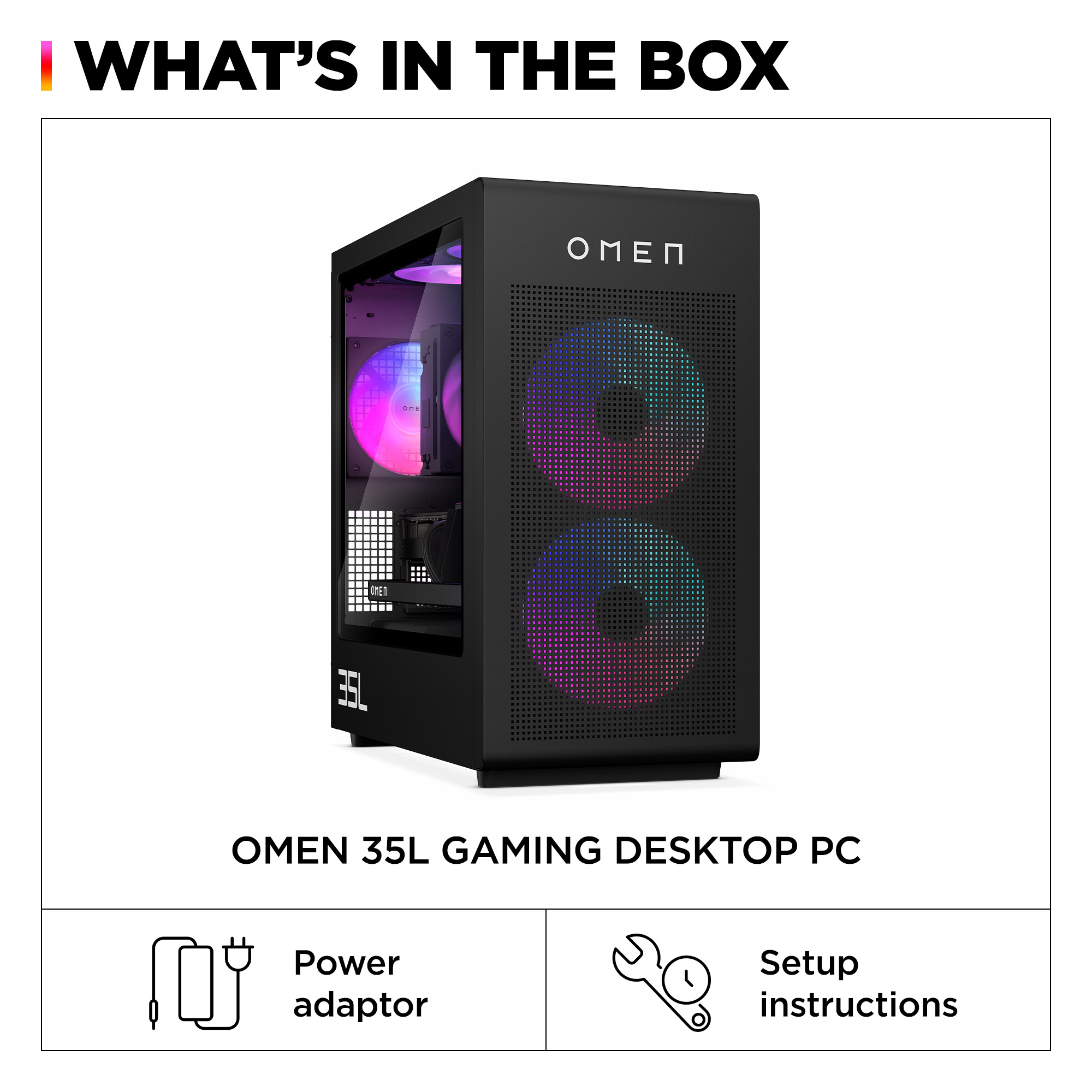 The OMEN 35L Gaming Desktop PC unlocks your performance potential. It features the latest Intel Core™ Processor[1] and advanced graphics, with OMEN branded components optimized for peak thermal capabilities and power. Designed for easy tool-less upgradability and personalization to suit your gaming needs.