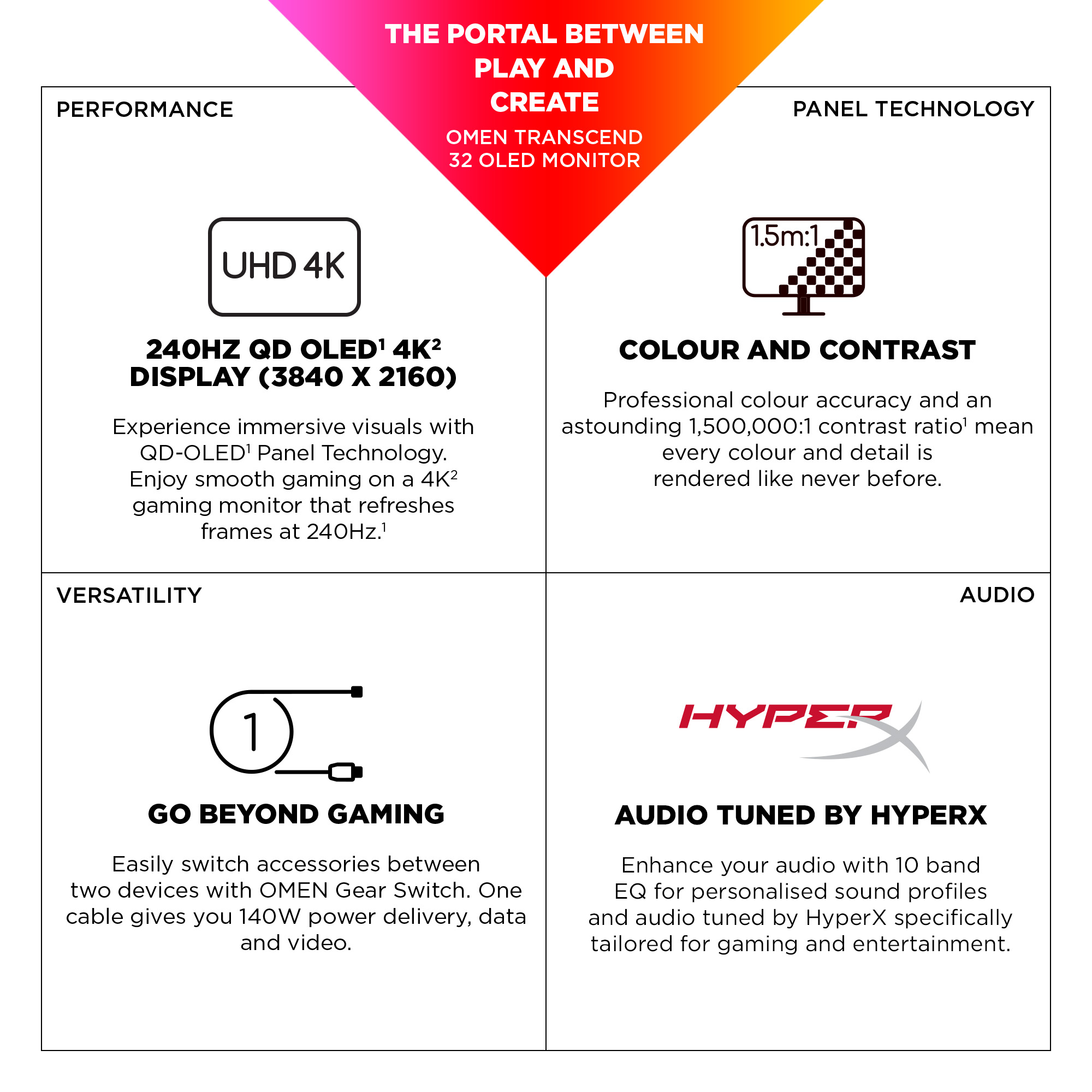 OMEN Transcend 31.5 inch UHD 240Hz OLED Gaming Monitor - OMEN Transcend 32 |