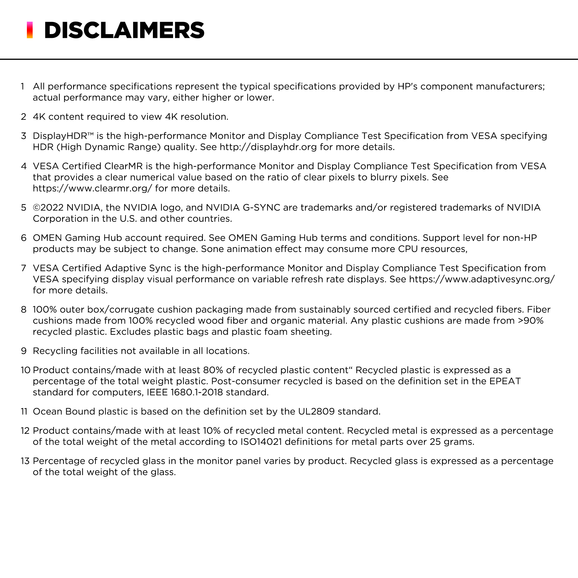 | Bundled software | OMEN Gaming Hub; HP Display Manager |