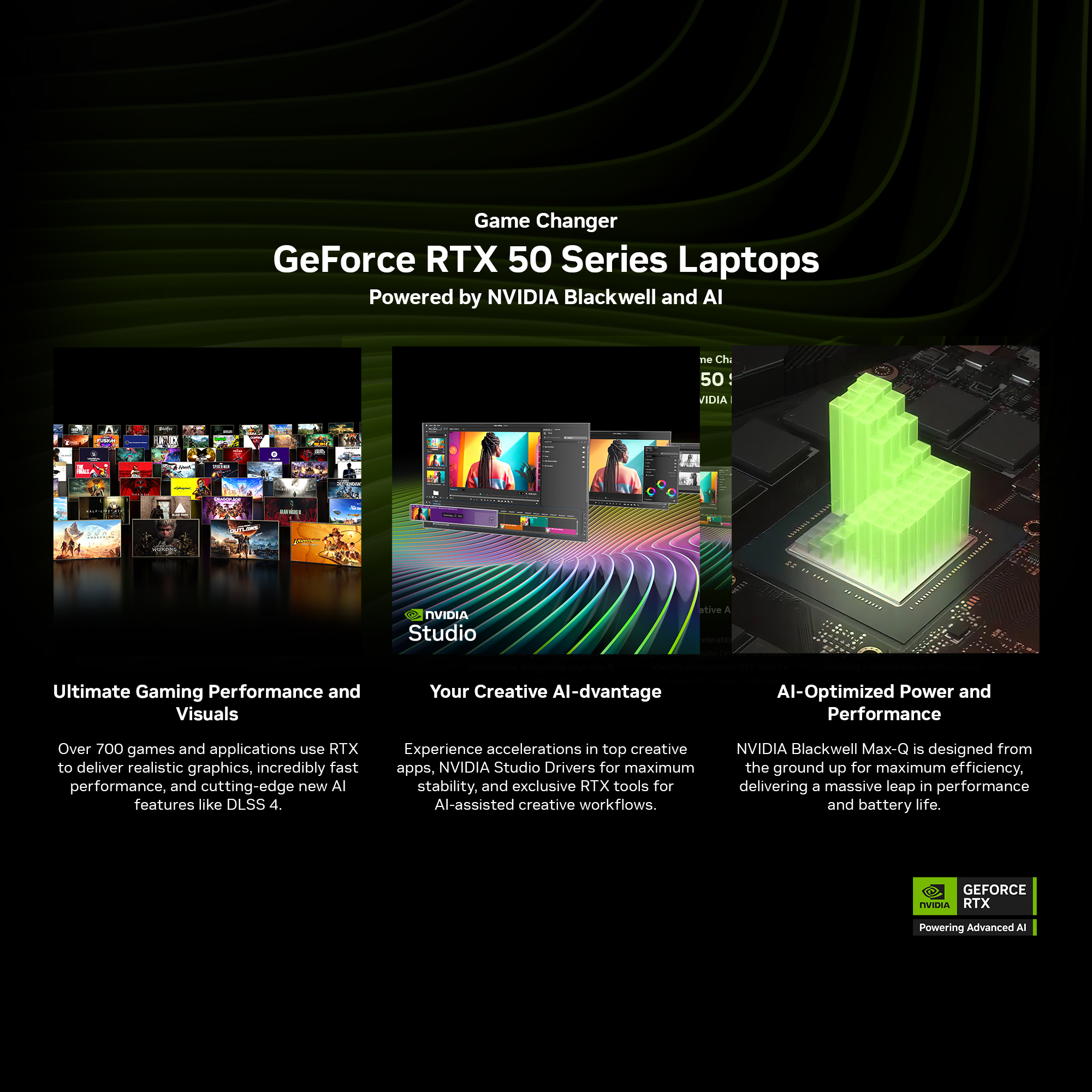 Intel® Core™ Ultra processor, NVIDIA® GeForce RTX™ 50 series GPUs with AI DLSS 4 and ray tracing - no vague promises, just performance.<sup>[2]</sup>
