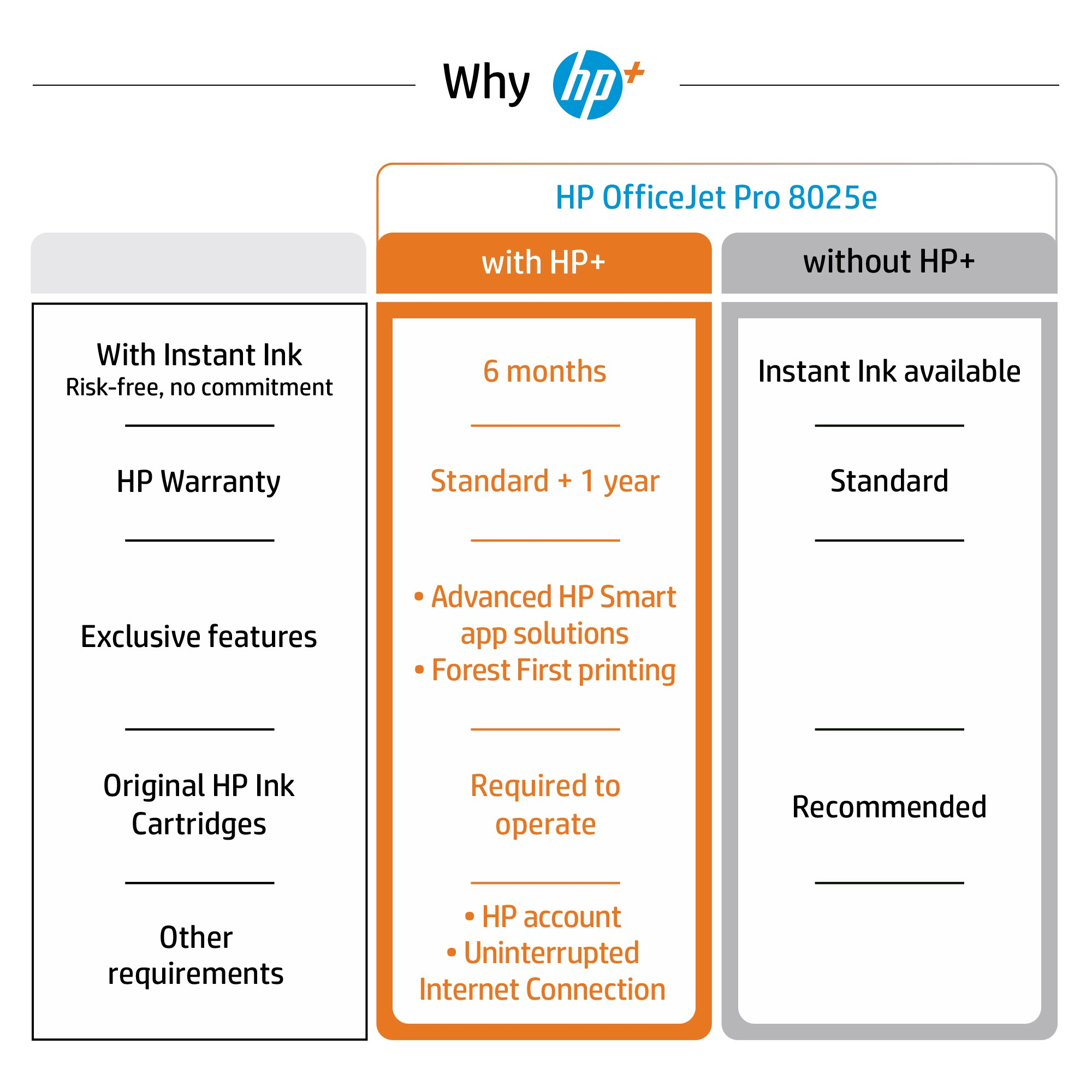 This is an HP+ enabled printer. Choose HP+ at product setup to activate benefits. HP+ requires an HP account, ongoing connection to the internet, and exclusive use of Original HP Ink cartridges for the life of the printer. More at: http://www.hp.com/plus