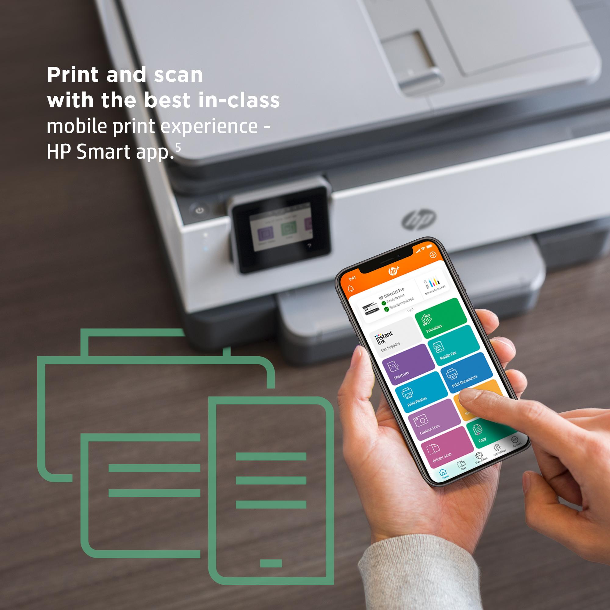 Print and scan from the palm of your hand. Enjoy advanced productivity features for 2 years with HP+.[3]