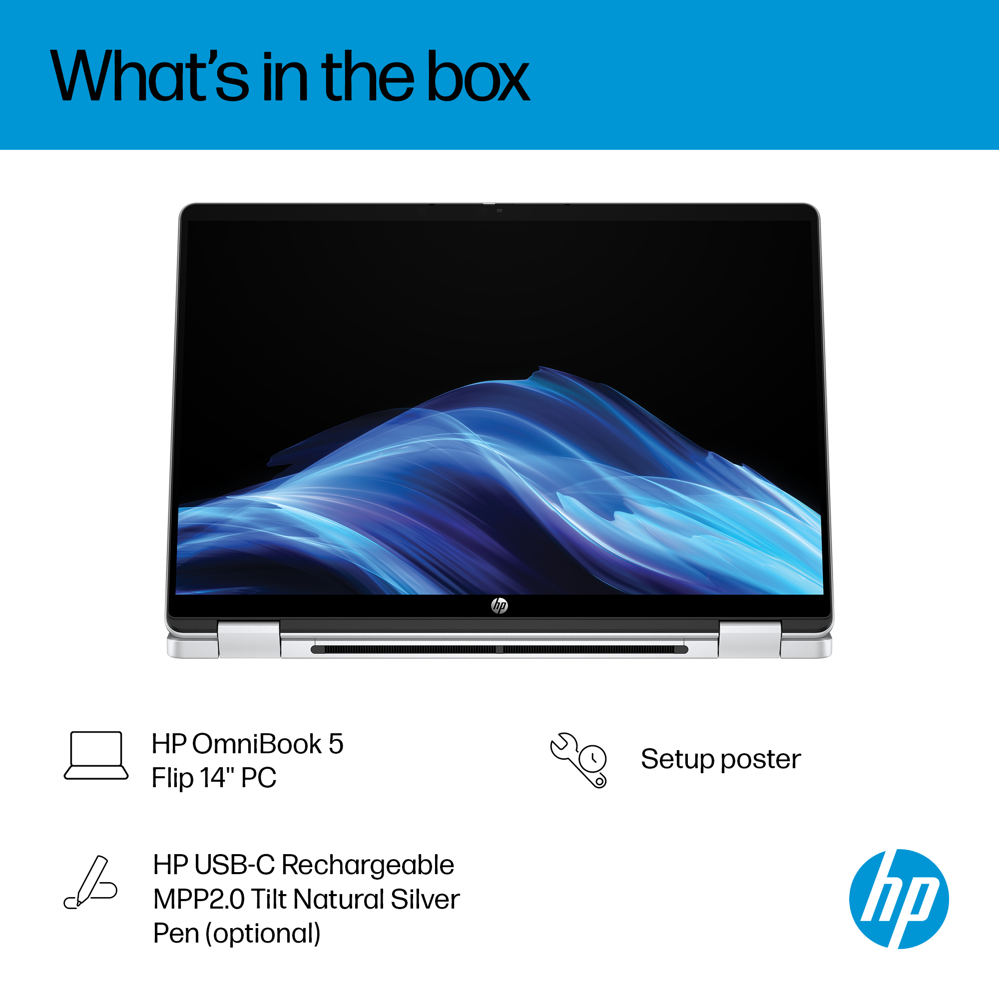 HP OmniBook 5 Flip 14-fp0012na Intel® Core™ i7 i7-1355U Hybrid (2-in-1) 35.6 cm (14") Touchscreen 2K 16 GB LPDDR5-SDRAM 512 GB SSD Wi-Fi 6 (802.11ax) Windows 11 Home Silver