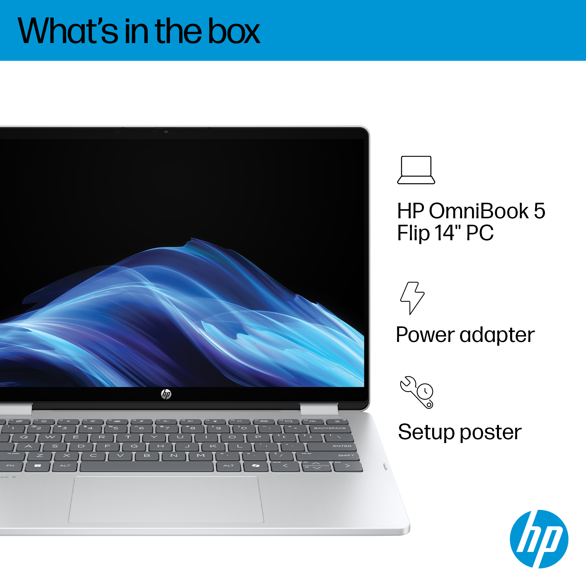 HP OmniBook 5 Flip 14-fp0013na Intel® Core™ i5 i5-1334U Hybrid (2-in-1) 35.6 cm (14") Touchscreen 2K 16 GB LPDDR5-SDRAM 512 GB SSD Wi-Fi 6 (802.11ax) Windows 11 Home Silver