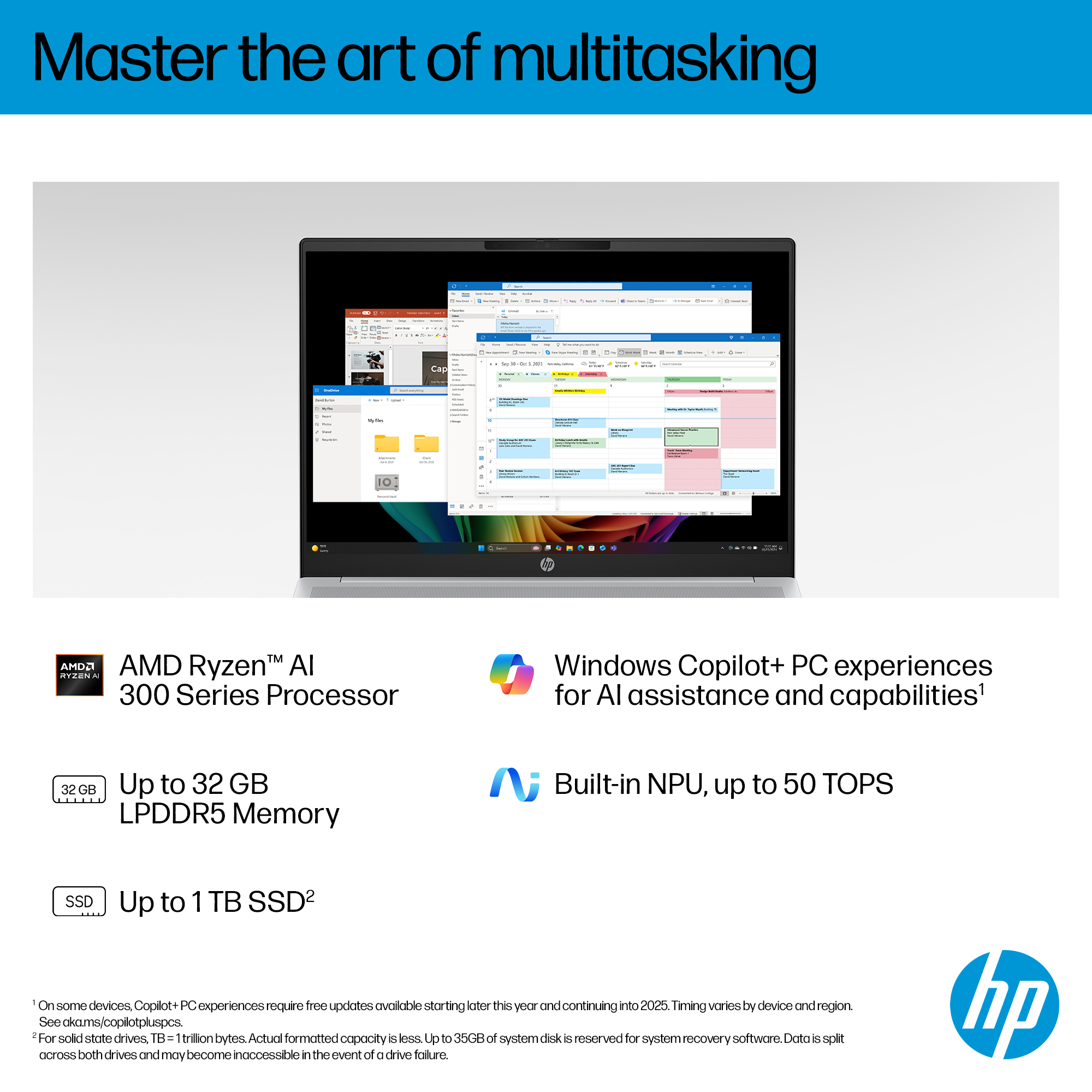 Multitask easily with this Copilot+ PC, AMD Ryzen™ AI 300 Series Processor<sup>[1]</sup> and a collection of solutions.