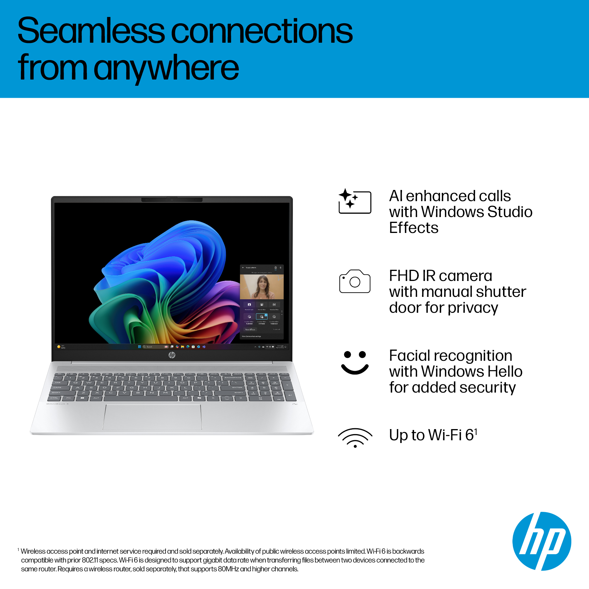 Showcase your ideas from anywhere with the FHD IR camera<sup>[6]</sup> with manual shutter for added privacy.