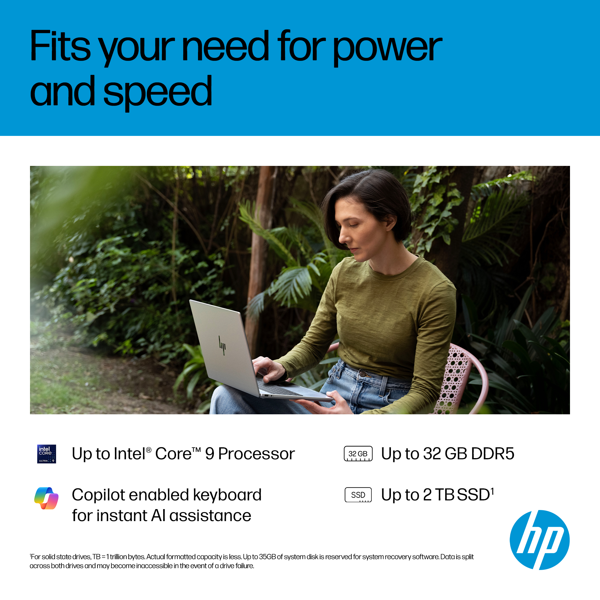 HP OmniBook 7 16 PCs are designed using recycled metals<sup>[3]</sup> and post-consumer recycled plastics<sup>[4]</sup>