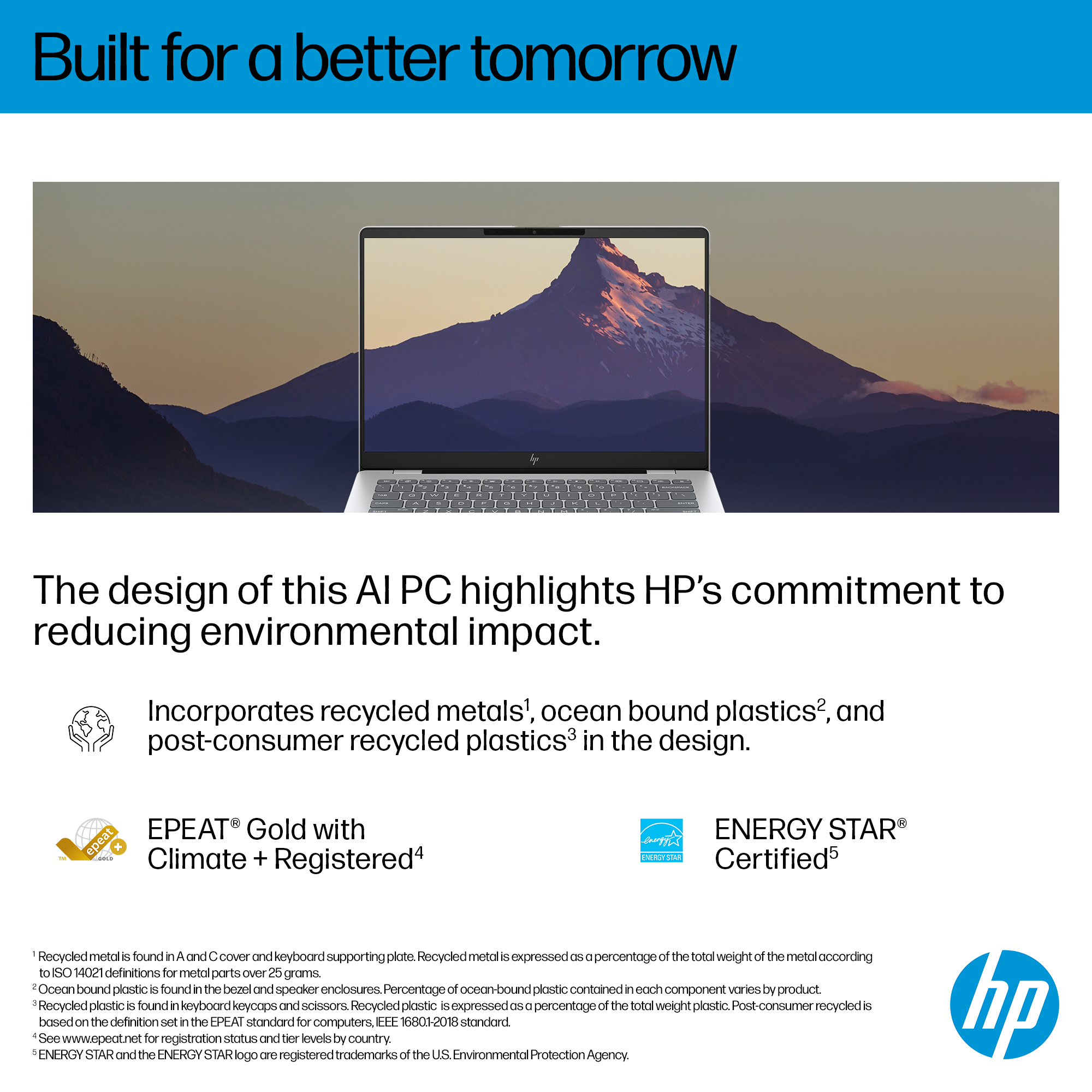This PC is made with recycled materials<sup>[3,4]</sup>, is EPEAT® Gold Climate+ rated, and ENERGY STAR® certified <sup>[5,6]</sup>