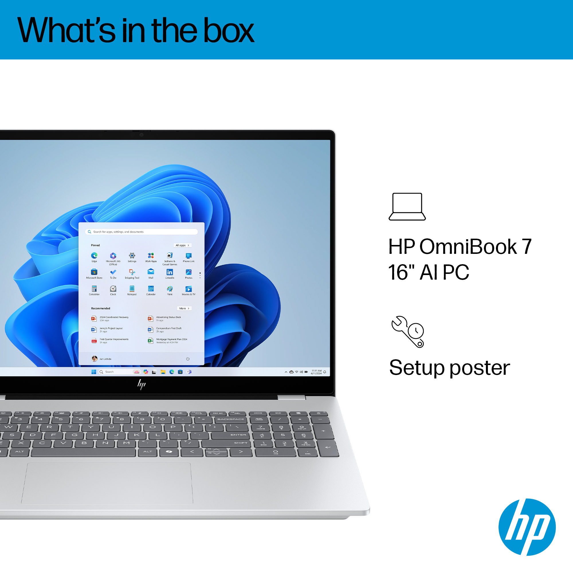 HP OmniBook 7 AI 16-ay0001na Intel Core Ultra 7 255H Laptop 40.6 cm (16") 2K 32 GB DDR5-SDRAM 1 TB SSD Wi-Fi 6E (802.11ax) Windows 11 Home AI PC Silver