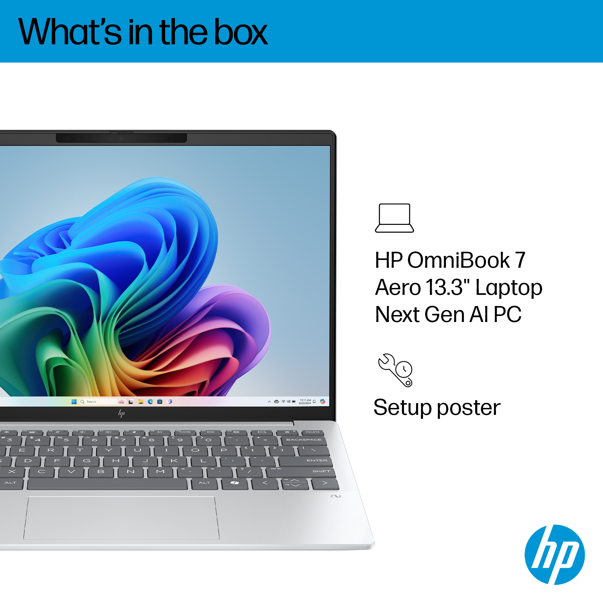 Weighing under 1 kg (2.2 lbs)[1], the HP OmniBook 7 Aero NGAI PC delivers mobility and powerful performance with an AMD Ryzen™ AI 300 series processor[2] and up to 50 TOPS[3] NPU. Its fast WiFi and HP Fast Charge[4] keep you connected and ready, while the micro-edge bezel display[5] ensures sharp visuals for editing and content creation.