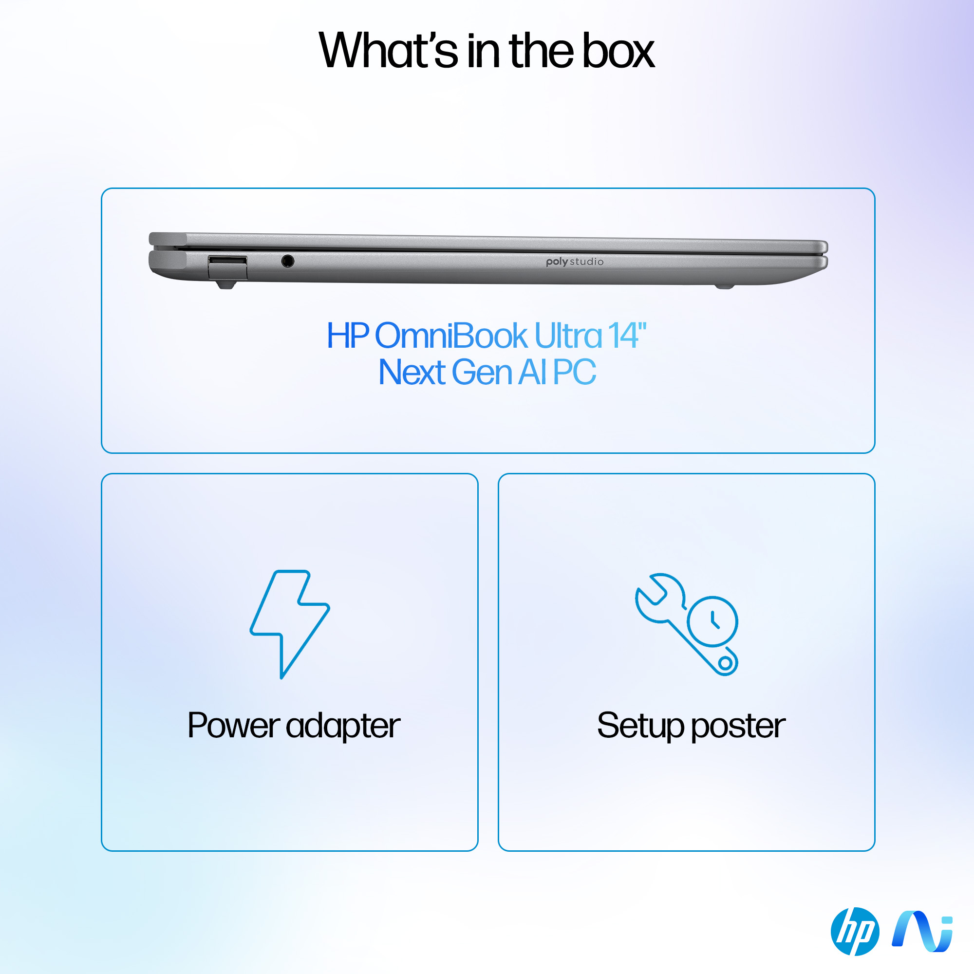 The HP OmniBook Ultra Next Gen AI PC is the ultimate powerhouse for supercharged compute and graphics performance to create and play. With personalized and secure AI tools to amplify your productivity and the best video/audio enhancement tools for authentic connections - all while safeguarding your PC with HP Wolf Security[8] features for consumers.
