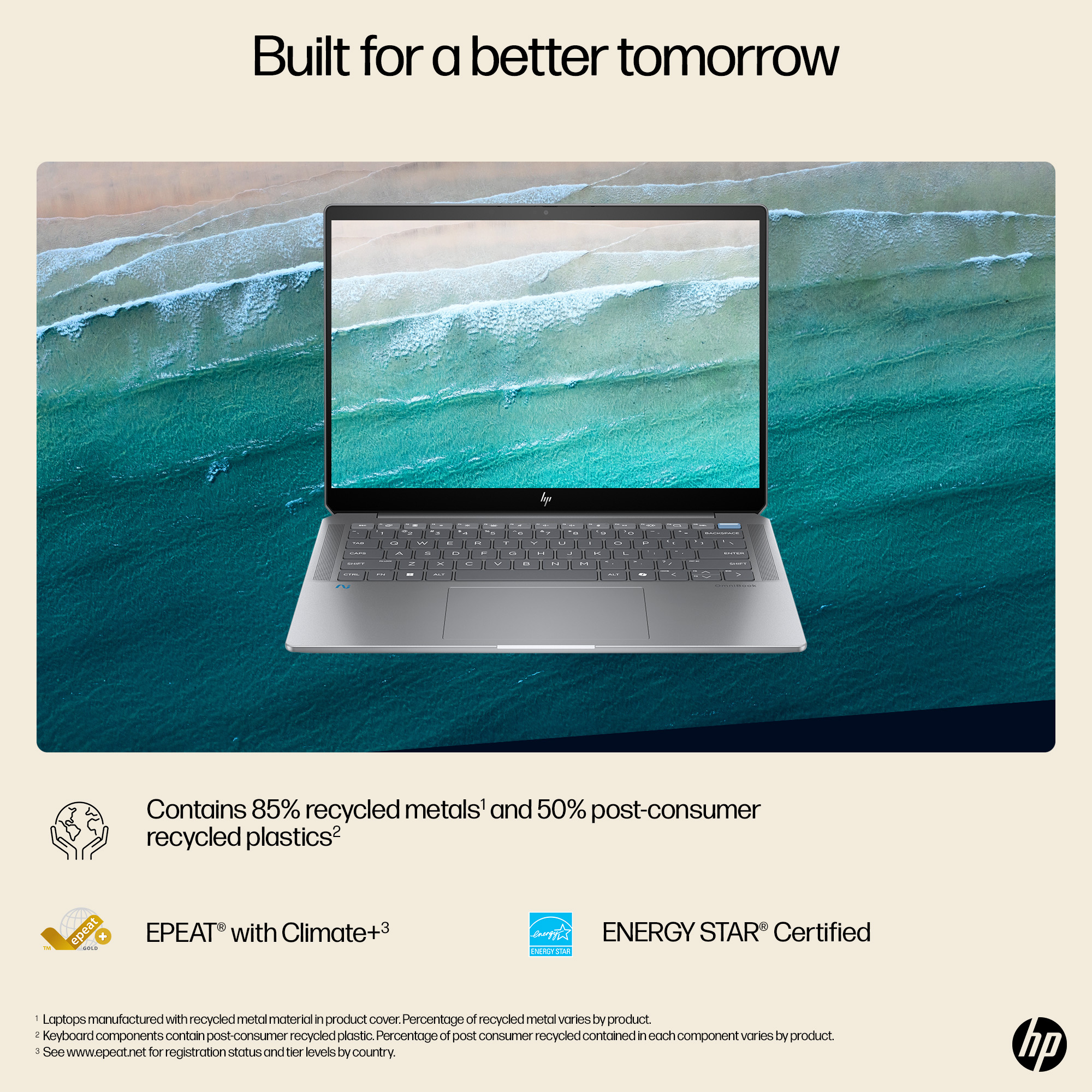 HP incorporates increasing amounts of recycled, renewable, and non-virgin raw materials. Because little things make a big difference, this product includes a percentage of recycled metals in the design.<sup>[14]</sup>